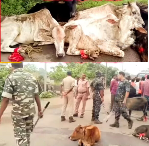 ଭଦ୍ରକ, ୬ା୮ (ଓଡ଼ିଆ ପୁଅ / ସ୍ନିଗ୍ଧା ରାୟ) – ଆଜି ଏକ ବେଆଇନ ଗୋରୁ ବୋଝେଇ ଯାଇଲୋ ଗାଡି କୁ ଗୋଡ଼ାଇ ଗୋଡ଼ାଇ ଧରିଲେ ଗୋ ରକ୍ଷକ। ଆନନ୍ଦ ପୁର ରୁ ଭଦ୍ରକ ଆସୁଥିବା ବେଳେ ରାନ୍ଦିଆ ବଜାର ନିକଟ ରେ ଧରି ଉଦ୍ଧାର କଲେ ଗୋ ରକ୍ଷକ ମାନେ। ଭେନ ଭିତରୁ ୧୨ ଟି ଗୋରୁ ଉଦ୍ଧାର ହୋଇଛି। ଉତ୍ୟକ୍ତ ଲୋକ ଙ୍କ ଦ୍ୱାରା ଗାଡି ଭଙ୍ଗାରୁଜା ହୋଇଥିବାବେଳେ ଘଟଣା ସ୍ଥଳରେ ଉତେଜନା ପରେ ଭଦ୍ରକ ଗ୍ରାମାଂଚଳ ପୋଲିସ ପହଂଚି ଉତ୍ୟକ୍ତ ଲୋକ ଙ୍କ ସହିତ ଆଲୋଚନା କରିବା ସହିତ ଉଦ୍ଧାର ଗୋରୁ ଗୁଡିକୁ ଗୋଶାଳାକୁ ପଠାଇବା ସହିତ ତଦନ୍ତ ଆରମ୍ଭ କରିଛି। ତେବେ ଏହି ରାସ୍ତାରେ ବାରମ୍ବାର ଗୋରୁ ଚାଲାଣ ହେଉ ଥିଲେ ମଧ୍ୟ ପୋଲିସ କିଛି ପଦକ୍ଷେପ ନେଉ ନ ଥିବାରୁ ସ୍ଥାନୀୟ ଲୋକ ମାନେ ତୀବ୍ର ଅସନ୍ତୋଷ ପ୍ରକାଶ କରିଛନ୍ତି।