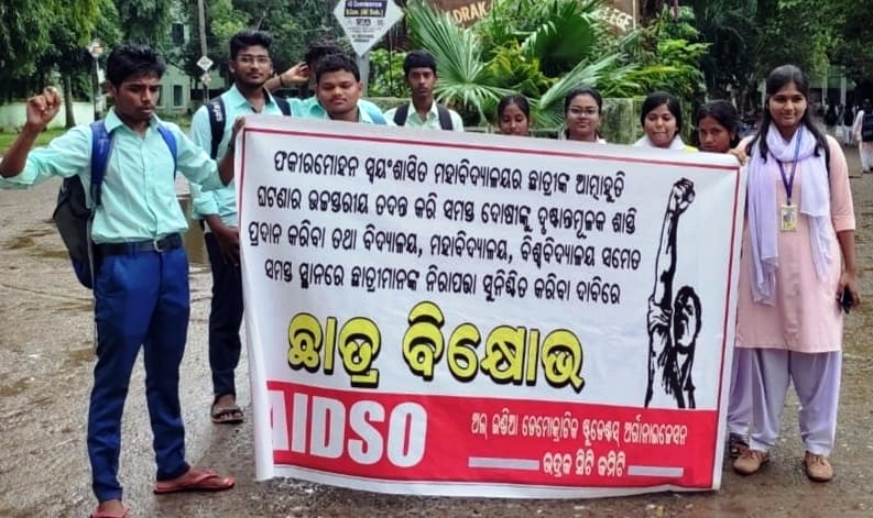 ଭଦ୍ରକ, ୧୪ା୭ (ଓଡ଼ିଆ ପୁଅ / ସ୍ନିଗ୍ଧା ରାୟ) – ବାଲେଶ୍ୱର ଫକୀର ମୋହନ ମହାବିଦ୍ୟାଳୟରେ ଘଟିଯାଇଥିବା ଛାତ୍ରୀ ଆତ୍ମାହୁତି ଘଟଣାର ବିଚାରବିଭାଗୀୟ ତଦନ୍ତ କରି ଚିହ୍ନଟ ସମସ୍ତ ଦୋଷୀଙ୍କୁ ଦୃଷ୍ଟାନ୍ତମୂଳକ ଶାସ୍ତି ପ୍ରଦାନ କରିବା ଦାବିରେ ଆଜି ଏଆଇଡିଏସଓ ଭଦ୍ରକ ୟୁନିଟ୍ ପକ୍ଷରୁ ଭଦ୍ରକ ମହାବିଦ୍ୟାଳୟ ସମ୍ମୁଖରେ ପ୍ରତିବାଦ ବିକ୍ଷୋଭ କରିଥିଲେ। ବିକ୍ଷୋଭକାରୀ ଛାତ୍ରଛାତ୍ରୀ ମାନେ ଜିଲ୍ଲାପାଳ ଅଫିସ୍ ଯାଇ ସେଠାରେ ଜିଲ୍ଲାପାଳଙ୍କ ମାଧ୍ୟମରେ ପୋଲିସ ଡିଜିଙ୍କୁ ସ୍ମାରକ ପତ୍ର ପ୍ରଦାନ କରିଛନ୍ତି। ଏହି କାର୍ଯ୍ୟକ୍ରମର ନେତୃତ୍ୱ ନେଇଥିଲେ ଛାତ୍ର ନେତା ସୁମନ କୁମାର ବେହେରା, ଶିବାନନ୍ଦ ପାଢି, ପ୍ରଭୁଦତ ଜେନା ପ୍ରମୁଖ।