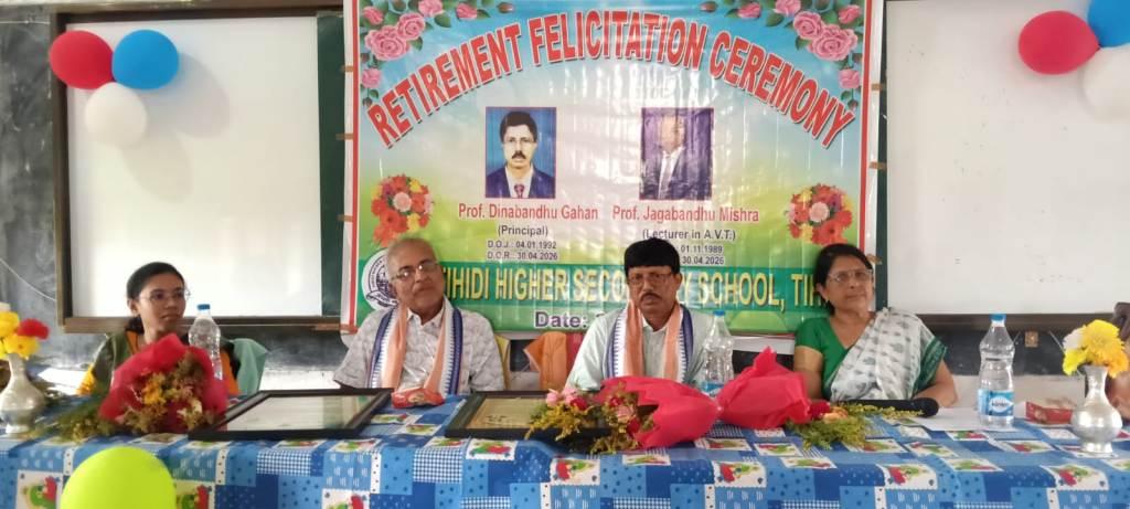 ଭଦ୍ରକ, ୩୦ା୪ (ଓଡିଆ ପୁଅ / ସ୍ନିଗ୍ଧା ରାୟ) – ଭଦ୍ରକ ଜିଲ୍ଲା ତିହିଡି଼ ଉଚ୍ଚ ମାଧ୍ୟମିକ ବିଦ୍ୟାଳୟର ଅଧ୍ୟକ୍ଷଙ୍କ ସମେତ ୩ଜଣଙ୍କୁ ବିଦାୟ କାଳୀନ ସମ୍ବର୍ଦ୍ଧନା ଦିଆଯାଇଛି । ବିଦ୍ୟାଳୟର ଅଧ୍ୟକ୍ଷ ଦୀନବନ୍ଧୁ ଗାହାଣ ଓ ଧନ୍ଦାମୂଳକ (ଭୋକେଶନାଲ)ଶିକ୍ଷକ ଜଗବନ୍ଧୁ ମିଶ୍ର ବିଦ୍ୟାଳୟରୁ ଅବସର ନେଇଥିବା ବେଳେ ଶ୍ୱେତାଲିନା ଦାସ ବଦଳି ହୋଇ ଭଦ୍ରକ କଲେଜରେ ଯୋଗ ଦେଇଛନ୍ତି। ଏହି ଉପଲକ୍ଷେ ଅନୁଷ୍ଠିତ ସଭାରେ ମନୋଲି ସାମଲା ଅତିଥି ପରିଚୟ କରିଥିବା ବେଳେ ଜିତେନ୍ଦ୍ର ରାୟମହାପାତ୍ର ମାନପାତ୍ର ପାଠ କରିଥିଲେ। ସମସ୍ତ ଅଧ୍ୟାପକ ଓ ଅଧ୍ୟାପିକାମାନେ ଅଧ୍ୟକ୍ଷଙ୍କ ସହନଶୀଳତା ଓ ସମୟାନୁବର୍ତିତା ଉପରେ ଆଲୋକପାତ କରିଥିବା ବେଳେ ଅନ୍ୟ ଅଧ୍ୟାପିକା ଓ ଶିକ୍ଷକଙ୍କ ଛାତ୍ର ବତ୍ସଳତା ସମ୍ପର୍କରେ ବକ୍ତବ୍ୟ ଦେଇଥିଲେ । ଛାତ୍ରଛାତ୍ରୀମାନେ ବନ୍ଦେ ଉତ୍କଳ ଜନନୀ ସଂଗୀତ ଗାନ କରିଥିଲେ। ଡ଼ ସୁକାନ୍ତ ଚନ୍ଦ୍ର ପାଣିଗ୍ରାହୀ ସମସ୍ତଙ୍କୁ ଧନ୍ୟବାଦ ଅର୍ପଣ କରିଥିଲେ। ଅଧ୍ୟାପକ ଜ୍ଞାନ ରଞ୍ଜନ ଭୂୟାଁ, ବିଜୟ କୁମାର ପଣ୍ଡା, ରମେଶ ଚନ୍ଦ୍ର ସାହୁ, ବିଜୟକୁମାର ସାହୁ, ଶ୍ରୀରାମ ଦାଶ, ନାରାୟଣ ପୁଷ୍ଟି, ନିରଞ୍ଜନ ପାଢ଼ୀ, ସରୋଜ କୁମାର ବାରିକ, ଅଧ୍ୟାପିକା ନିରୁପମା ସାହୁ, ଉଷାରାଣୀ ଯେନା, ମନ୍ଦାକିନୀ ବଳ,ଅଲିଭା ଯେନା,ଅଭିଲିପସା ଦାଶ, ଜ୍ୟୋତ୍ସାରାଣୀ ବିଶ୍ୱାଳ, ନିବେଦିତା ପଣ୍ଡା, ଜୟଶ୍ରୀ ମହାରଣା, କିରାଣୀ ବିପଦ ଭଞ୍ଜନ ପତି, ପଦ୍ମିନୀ ମହାନ୍ତି, ରାଜେଶ ଦାସ,ସୁନୀଲ ସେନାପତି ବଶୀଧର ସେଠୀ,ପିତାମ୍ବର ପାତ୍ର, ଦିବାକର ବୀର, ପ୍ରଦୀପ କୁମାର ରାଉଳ, ଅନିଲ କୁମାର ବାରିକ, ରମେଶ କୁମାର ବଳଙ୍କ ସମେତ ସମସ୍ତ କର୍ମଚାରୀ ଉପସ୍ଥିତ ଥିଲେ।