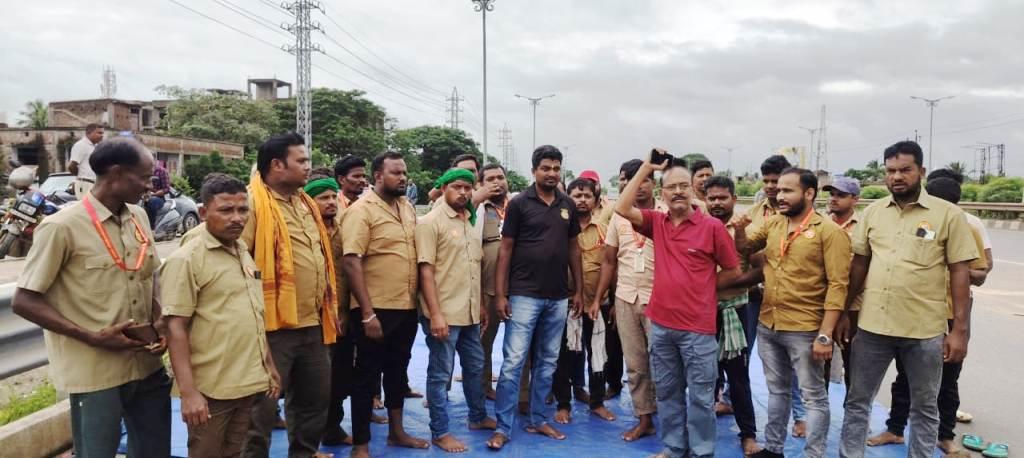 ଭଦ୍ରକ, ୮ା୭ (ଓଡ଼ିଆ ପୁଅ / ସ୍ନିଗ୍ଧା ରାୟ) – ମୋଟର ଯାନ ଆଇନ-୨୦୧୯ ବାତିଲ୍ କରିବା, ଡ୍ରାଇଭର ମାନଙ୍କୁ ସ୍ଥାୟୀ ଶ୍ରମିକର ମାନ୍ୟତା ଦେବା, ଇଛୁକ ଡ୍ରାଇଭର ମାନଙ୍କୁ ବିନାସୁଧରେ ୧୦ ଲକ୍ଷ ଟଙ୍କା ଋଣ ପ୍ରଦାନ କରିବା, ସମସ୍ତ ଡ୍ରାଇଭର ମାନଙ୍କୁ ଇଏସଆଇ ରେ ଅନ୍ତର୍ଭୁକ୍ତ କରିବା, ଅବସରପ୍ରାପ୍ତ ଡ୍ରାଇଭର ମାନଙ୍କୁ ମାସିକ ପେନସନ ପ୍ରଦାନ କରିବା, ଅତ୍ୟାବଶ୍ୟକ ସାମଗ୍ରୀର ଦର କମାଇବା, ଡବଲ୍ ଇଞ୍ଜିନ୍ ସରକାର ଜାତୀୟ ସଂପତି ବିକ୍ରି ବଂଦ କରିବା, ଓଡିଶାରେ ବିପର୍ଯ୍ୟସ୍ତ ଆଇନଶୃଙ୍ଖଳା ପରିସ୍ଥିତିର ସୁଧାର ଆଣିବା ଦାବି ନେଇ ଅଲ୍ ଓଡିଶା ଡ୍ରାଇଭର ଆସୋସିଏସନ୍ ପକ୍ଷରୁ ଭଦ୍ରକ ବନ୍ତ ଛକ ନିକଟସ୍ଥ ଜାତୀୟ ରାଜପଥ-୧୬ କୁ ସକାଳ ୮:୦୦ ଘଟିକା ରୁ ସକାଳ ୧୦:୦୦ ଘଟିକା ପର୍ଯ୍ୟନ୍ତ ବଂଦ ରଖାଯାଇଥିଲା । ଫଳରେ ଜାତୀୟ ରାଜପଥରେ ଶହ ଶହ ଯାନବାହନ ବଂଦ ହୋଇ ରହିଥିଲା । ଏହି ବଂଦ ଆନ୍ଦୋଳନରେ ସିଆଇଟିୟୁ ଭଦ୍ରକ ଜିଲ୍ଲା ସଭାପତି ଦିବ୍ୟସିଂହ ନାୟକ, ସିପିଆଇ(ଏମ) ଭଦ୍ରକ ଜିଲ୍ଲା କମିଟି ସଭ୍ୟ ବିକାଶ ନାଥ, ଅଲ୍ଓଡିଶା ଡ୍ରାଇଭର ଆସୋସିଏସନ୍ ର ଭଦ୍ରକ ଜିଲ୍ଲା ସଭାପତି ଅଜୟ ଚାନ୍ଦ, ଆସୋସିଏସନ୍ ର ଅନ୍ୟତମ ନେତା ଅଭିରାମ ବେହେରା, ମାନସ ସାହୁ, ଗୋପିନାଥ ସାହୁ, କାଲୁ ଖାନ୍ ପ୍ରମୁଖ ନେତୃତ୍ୱ ନେଇଥିଲେ । ଆସନ୍ତା ଜୁଲାଇ,୯ ସର୍ବଭାରତୀୟ ସାଧାରଣ ଧର୍ମଘଟରେ ଅଲ୍ ଓଡିଶା ଡ୍ରାଇଭର ଆସୋସିଏସନ୍ ସାମିଲ ହେବ ବୋଲି ଆସୋସିଏସନ୍ ପକ୍ଷରୁ ଜିଲ୍ଲା ସଭାପତି ଅଜୟ ଚାନ୍ଦ ଆନ୍ଦୋଳନ ସ୍ଥଳରେ ଘୋଷଣା କରିଥିଲେ ।