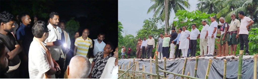 ଭଦ୍ରକ, ୩ା୭ (ଓଡ଼ିଆ ପୁଅ / ସ୍ନିଗ୍ଧା ରାୟ) – ଭଦ୍ରକ ଜିଲା ଧାମନଗର ବ୍ଲକ ରେ ଲଗାଣ ବର୍ଷା ଯୋଗୁଁ ବୈତରଣୀ ଓ କୋଚିଳା ନଦୀ ରେ ଏକ ଛୋଟ ବନ୍ୟା ଚଳିତ ମାସ ୧ ତାରିଖ ଦିନ ଆସିଥିଲା । ଏହି ବନ୍ୟା ରେ ପଧାନି ପଂଚାୟତ ର ସଇଲୋ ଠାରେ ବିଶ୍ୱାଳଘର ନିକଟରେ କୋଚିଳା ନଦୀ ବନ୍ଧ ଦୃବଳ ଥିଲା ବନ୍ଧ କାମ ମରାମତି ବି ଚାଲିଥିଲା ଭୟଭୀତ ବି ଗ୍ରାମବାସି ଥିଲେ । ଖବର ପାଇଁ ଉଚ୍ଚ ଶିକ୍ଷାମନ୍ତ୍ରୀ ସୂର୍ଯ୍ୟବଂଶୀ ସୁରଜ ୨ ତାରିଖ ସଂଧ୍ୟା ନଦୀବନ୍ଧ ବୁଲି ଦେଖିଥିଲେ ଓ ସେଠାରେ ସ୍ଥାୟୀ ପ୍ରତିକାର କରିବା ପାଇଁ ପ୍ରତିଶ୍ରୁତି ଦେଇଥିଲେ। ତେବେ ନିମ୍ନମାନର ନଦୀବନ୍ଧ କାର୍ଯ୍ୟପାଇଁ ବନ୍ଧ ଧସିଲା ବୋଲି ଧାମନଗର ବିଜେଡ଼ି ଅଭିଯୋଗ କରିଛି, ଗୁରୁବାର ଦିନ ଧାମନଗର ବିଜେଡ଼ିର ଏକ ପ୍ରତିନିଧି ଦଳ ଘଟଣା ସ୍ଥଳରେ ପହଞ୍ଚି। ବିଭାଗୀୟ ଅଧିକାରୀଙ୍କ ସହ ଆଲୋଚନା ଓ ନଦୀ ବନ୍ଧ ବୁଲି ଦେଖିଥିଲେ । ବାରମ୍ୱାର ଉକ୍ତ ସ୍ଥାନରେ ମରାମତି ହେଉଥିଲେ ବି କାହିକି ଏପରି ନଦୀବନ୍ଧ ଧସୁଚି ବୋଲି ପ୍ରଶ୍ନ ରେ ବିଭାଗୀୟ ଅଧିକାରୀ କିଶୋର ଦାସ କହିଛନ୍ତି ନଦୀ ର ତଳ ଅଂଶ ରେ ଏକ ପତଳା କାଦୁଆ ମାଟି ରହୁଥିବାରୁ ଏପରି ଘଟୁଛି ତେବେ ଖୁବ ଶୀଘ୍ର ସେଠାରେ ସ୍ତାଇ ପ୍ରତିକାର କରାଯିବ ବୋଲି ଶ୍ରୀ ଦାସ କହିଥିଲେ।ବିଜେଡ଼ି ର ଏହି ପ୍ରତିନିିଧିଦଳରେ ବିଜେଡ଼ିର ନିର୍ବାଚନ ମଣ୍ଡଳୀ ସ୍ତରୀୟ ନେତା ଡାକ୍ତର ସଞ୍ଜୟ ଦାସ, ନ ପୂର୍ବତନ ପଂଚାୟତ ସମିତି ଅଧ୍ୟକ୍ଷ ଅଶୋକ କୁମାର ନାୟକ, ଜିଲ୍ଳା ପରିଷଦ ସଭ୍ୟ ପ୍ରଦୀପ ମଲ୍ଲିକ, ସାରଦା ପ୍ରସନ୍ନ ସାହୁ,ବିଜେଡ଼ି ବ୍ଲକ ସଭାପତି ପ୍ରତାପ ସାମଲ, ପୂର୍ବତନ ସଭାପତି ଉମେଶ ଚନ୍ଦ୍ର ମହାନ୍ତି, ପୂର୍ବତନ ସଭାପତି ସୁଶାନ୍ତ ରାଉତଙ୍କ ସମେତ ବହୁ ଛାମୁଆଁ ସଙ୍ଗଠକ ଓ ସ୍ଥାନୀୟ ଅଧିବାସୀ ଉପସ୍ଥିତ ଥିଲେ।