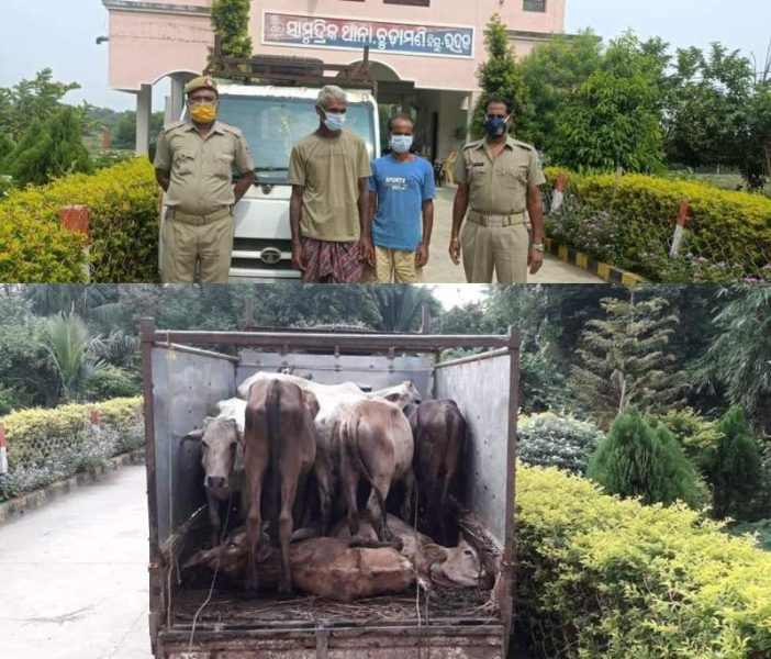 ଭଦ୍ରକ, ୨୬ା୮ (ଓଡ଼ିଆ ପୁଅ / ସ୍ନିଗ୍ଧା ରାୟ) – ଭଦ୍ରକ ଜିଲାରେ ଚୋରା ଗୋ ଚାଲାଣ ରାକେଟ୍ ସକ୍ରୀୟ ରହିଥିବାବେଳେ ଆଜି ଏହି ଜିଲାର ବାସୁଦେବପୁର ବ୍ଲକ୍ ଚୂଡାମଣି ସାମୁଦ୍ରିକ ଥାନା ପୁଲିସ୍ ଏକ ଗୋରୁ ବୋଝେଇ ପିକ୍ଅପ୍ ଭ୍ୟାନ୍କୁ ଜବତ କରିଛି । ଏହି ଘଟଣା ସଂପର୍କରେ ଯାହା ଜଣାଯାଏ ଚୂଡାମଣି ସାମୁଦ୍ରିକ ଥାନା ପୁଲିସ୍ ପାଟ୍ରୋଲିଂ କରୁଥିବାବେଳେ ଓଆର-୦୪ଏନ୍-୯୩୨୯ ନମ୍ବରର ଏକ ଗୋରୁ ବୋଝେଇ ଗାଡିକୁ ଜବତ କରିଥିଲା । ଏବଂ ତଦନ୍ତ କାଳରେ ୨ ଜଣଙ୍କୁ ଗିରଫ କରିଥିବା ଘଟଣା ଥାନା ପକ୍ଷରୁ ସୂଚନା ମିଳିଛି ।