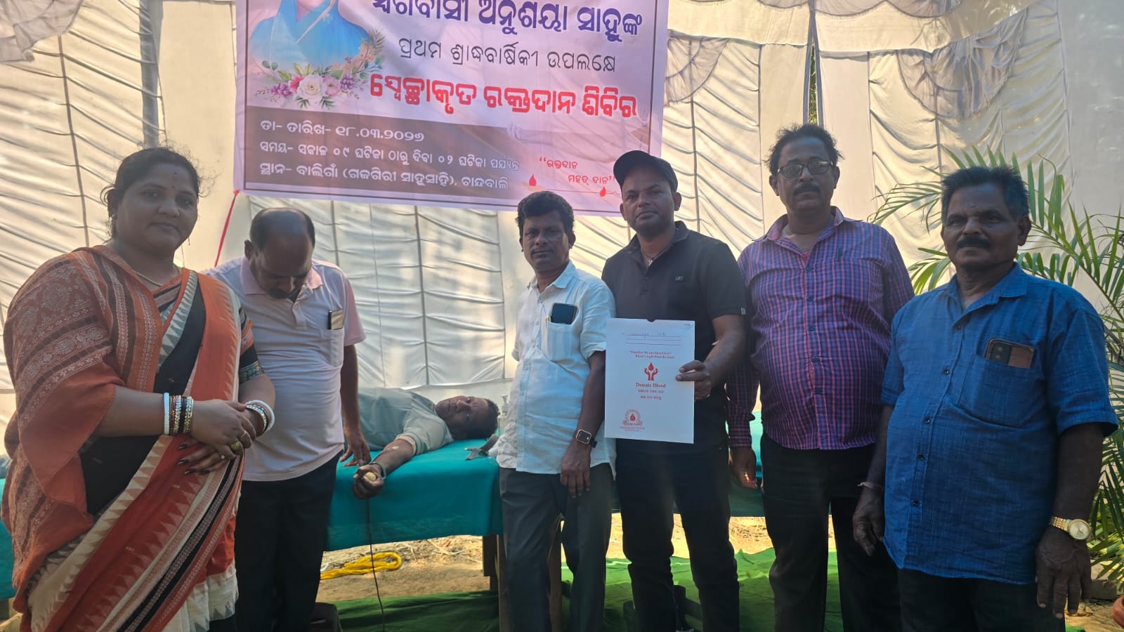 ଚାନ୍ଦବାଲି ଗଜଗିରି ସାହୁସାହିରେ ସ୍ୱର୍ଗତ ଅନୁଶୟା ସାହୁଙ୍କ ସ୍ମୁତିରେ ରକ୍ତଦାନ ଶିବିର