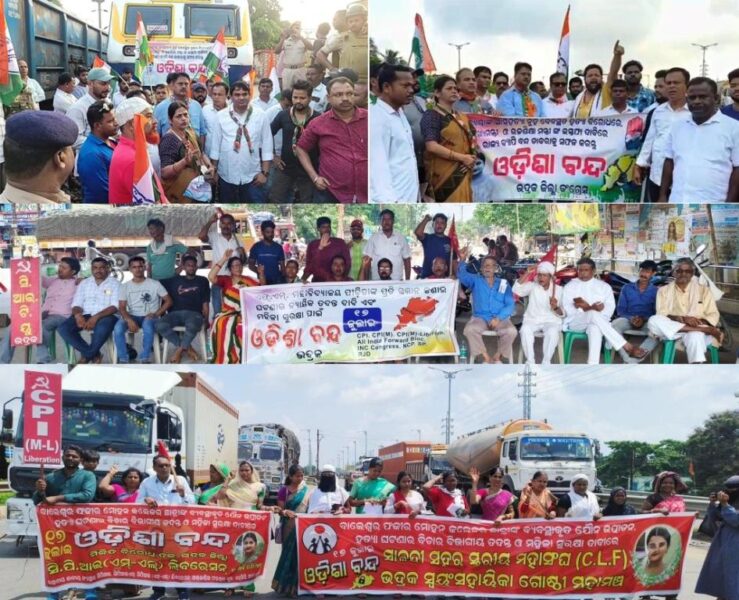 ଭଦ୍ରକ, ୧୭ା୭ (ଓଡ଼ିଆ ପୁଅ / ସ୍ନିଗ୍ଧା ରାୟ) – ଆଜି ପୂର୍ବ ଘୋଷଣା ମତେ ଜାତୀୟ କଂଗ୍ରେସ ଓ ମିଳିତ ବାମପନ୍ଥୀ ଦଳ ପକ୍ଷରୁ ଭଦ୍ରକରେ ଓଡ଼ିଶା ବନ୍ଦ ସ୍ୱତଃସ୍ପୂର୍ତ ଭାବେ ସଫଳ ହୋଇଛି । ଏଠାରେ ସୂଚନାଯୋଗ୍ୟ ବାଲେଶ୍ୱର ଫକୀର ମୋହନ ସ୍ୱୟଂ ଶାସିତ ମହାବିଦ୍ୟାଳୟ ଛାତ୍ର ନେତ୍ରୀ ସୌମ୍ୟଶ୍ରୀ ବିଶି ଙ୍କ ଆନୁଷ୍ଠାନିକ ହତ୍ୟା ର ଅଭିଯୁକ୍ତ ଅଧ୍ୟାପକ ମାନଙ୍କୁ ଗିରଫ, ବାଲେଶ୍ୱର ସାଂସଦ ପ୍ରତାପ ଷଡଙ୍ଗୀ, ରାଜ୍ୟ ଉଚ୍ଚଶିକ୍ଷା ମନ୍ତ୍ରୀ ସୂର୍ଯ୍ୟବଂଶୀ ସୂରଜ, କେନ୍ଦ୍ର ଶିକ୍ଷା ମନ୍ତ୍ରୀ ଧର୍ମେନ୍ଦ୍ର ପ୍ରଧାନ, ମୁଖ୍ୟମନ୍ତ୍ରୀ ମୋହନ ଚରଣ ମାଝୀଙ୍କ ଇସ୍ତଫା, ସୌମଶ୍ରୀ ଆନୁଷ୍ଠାନିକ ହତ୍ୟା ର ନ୍ୟାୟିକ ତଦନ୍ତ ଦାବି କରି ମିଳିତ ବାମପନ୍ଥୀ ଦଳ ଓ ଜାତୀୟ କଂଗ୍ରେସ ପକ୍ଷରୁ ମିଳିତ ଭାବେ ଏକ ପଟୁଆର ଭଦ୍ରକ ବନ୍ତ ଛକ ଠାରୁ ବାହାରି ଭଦ୍ରକ ସହର ପରିକ୍ରମା କରି ସହରର ବିଭିନ୍ନ ସ୍ଥାନରେ ଟାୟାର ଜାଳି ପ୍ରତିବାଦ ସଭା ଅନୁଷ୍ଠିତ ହୋଇଥିଲା ।ଏହି ସଭାରେ ଓଡିଶା ବଂଦ କୁ ଭଦ୍ରକବାସୀ ସଫଳ କରି ଥିବାରୁ ଧନ୍ୟବାଦ ଦେଇଥିଲେ । ଏହି ଶୋଭାଯାତ୍ରାରେ ଜାତୀୟ କଂଗ୍ରେସ ଜିଲ୍ଳା ସଂଯୋଜକ ଅସିତ୍ ପଟ୍ଟନାୟକ, ପୂର୍ବତନ କଂଗ୍ରେସ ସଭାପତି ନଳିନୀ ମହାନ୍ତି,ରାଜ୍ୟ ପ୍ରଦେଶ କଂଗ୍ରେସ କମିଟି ଦଳିତ ସେଲର ସାଧାରଣ ସମ୍ପାଦକ ରାଜେନ୍ଦ୍ର ଜେନା, ସନିଆ ନନ୍ଦ, ନାରୀନେତ୍ରୀ ଅମିତାବାଳା ଆଚାର୍ଯ୍ୟ, ଦେବରୁପ ମହାନ୍ତି, ହେମନ୍ତ ସାହୁ,ଭଦ୍ରକ ବ୍ଲକ ସଭାପତି ଆଇନଜୀବୀ ପ୍ରଫୁଲ୍ଲ ସାମଲ, ସିପିଆଇ(ଏମ) ଜିଲ୍ଲା ସଂପାଦକ ଦିବ୍ୟସିଂହ ନାୟକ, ସିପିଆଇ ଜିଲ୍ଲା ସଂପାଦକ ଶୁଭେନ୍ଦ୍ର ପ୍ରତାପ ମହାନ୍ତି, ସିପିଆଇଏମଏଲ ଲିବରେସନ ଜିଲ୍ଲା ସଂପାଦକ ସମର ବଳ, ସି.ଏଲ.ଏଫ.ର ଜିଲ୍ଳା ସଭାନେତ୍ରୀ ଉର୍ମିଳା ପଣ୍ଡା, ସମ୍ପାଦିକା ଜୟନ୍ତୀ ବିଶ୍ୱାଳ, କୋଷାଧ୍ୟକ୍ଷା ମଞ୍ଜୁଲତା ଦାସ, ନାରୀନେତ୍ରୀ ମଧୁମିତା ପୃଷ୍ଟି, ଗୀତାଞ୍ଜଳୀ ନାୟକ, ରୁକ୍ସାନା ବିବି, ଦୀପ୍ତିପ୍ରଭା ରାୟ, ଗୁଡ଼ିଆ ଫର୍ଜାନା, ଅଖିଳ ଭାରତ ଗଣତ୍ରାନ୍ତ୍ରିକ ମହିଳା ସମିତିର ରାଜ୍ୟ ସମ୍ପାଦିକା ସୁରଜିତା ନାୟକ,ସିପିଆଇ(ଏମ) ଜିଲ୍ଲା କମିଟି ସଭ୍ୟ ବିକାଶ ନାଥ, ରାଧାନାଥ ଦାସ, ଗିରିଧାରୀ ନାଥ,କୃଷକ ନେତା ଚନ୍ଦ୍ରଶେଖର ନାୟକ,ଶ୍ରମିକ ନେତା ରମେଶ ଜେନା, ଯୁବ ନେତା ପ୍ରକାଶ ଜ୍ୟୋତି ମହାକୁଡ, ହାକିମ ଦାସ , ଚାଷୀ ବିମ୍ବାଧର ବାରିକ୍, ସେକ୍ ସନାଉଲ୍ଲା ପ୍ରମୁଖ ନେତୃତ୍ୱ ନେଇଥିଲେ । ଅନ୍ୟମାନଙ୍କ ମଧ୍ୟରେ ରମେଶ ଜେନା, କାଳନ୍ଦୀ ପାତ୍ର, ଡ. ପ୍ରହଲ୍ଲାଦ ପତି, ନବ ବେହେରା, ନିରଂଜନ ପାଣି, ଦିଲ୍ଲୀପ ନାୟକ , ପ୍ରଭାତୀ ଜେନା, ପ୍ରଭାତୀ ନାୟକ, ଶୁମତି ନାୟକ, ଶିଖା ମହାପାତ୍ର ଶାନ୍ତିଲତା ବାରିକ, ସଂଯୁକ୍ତା ଯାଦବ, ଶାନ୍ତିଲତା ନାୟକ, ପଦ୍ମିନୀ ପଣ୍ଡା, ଶ୍ରମିକ ନେତା ବାମଦେବ ମିଶ୍ର, ଅକ୍ଷୟ ମଲ୍ଲିକ, ବିଶ୍ୱନାଥ ନାୟକ, ଚକ୍ରଧର ପାତ୍ର, ସେକ୍ ରୋଷନ, ସତାର , ସେକ୍ସତା ରୁଦ୍ଦିନ, ନରେନ୍ଦ୍ର ଦାସ, କଲାମ ଖାଁ, ପ୍ରଫୁଲ୍ଲ ସାମଲ, ପୂର୍ଣ୍ଣଚନ୍ଦ୍ର ମହାନ୍ତି ପ୍ରମୁଖ ସାମିଲ ଥିଲେ । ଆଜିର ଏହି ବନ୍ଦ ଫଳରେ ସମସ୍ତ ସରକାରୀ, ବେସରକାରୀ ପ୍ରତିଷ୍ଠାନ, ସ୍କୁଲ – କଲେଜ,ବ୍ୟାଙ୍କ, ବ୍ୟବସାୟ ପ୍ରତିଷ୍ଠାନ, ବସ, ଟ୍ରକ ଓ ଚରମ୍ପା ରେଳଷ୍ଟେସନରେ ଟ୍ରେନ ଚଳାଚଳ ବନ୍ଦ ରହିଥିଲା । କେବଳ ସାଇକେଲ, ବାଇକ ଓ ଜରୁରୀ ଚିକିତ୍ସା ଗାଡି ଗୁଡିକ ଚଳାଚଳ କରିଥିଲା । ୧୬ନମ୍ବର ଜାତୀୟ ରାଜପଥରେ ଯାନ ବାହନ ଚଳାଚଳ ଠପ 