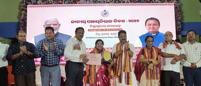 ଭଦ୍ରକ, ୨୫୪ (ଓଡ଼ିଆ ପୁଅ / ସ୍ନିଗ୍ଧା ରାୟ) – ଭଦ୍ରକ ଜିଲ୍ଲା ତିହିଡି ବ୍ଲକ ଅଧିନ ମଙ୍ଗଳପୁର ପଂଚାୟତ ସରପଂଚ ପୁଷ୍ପାଞ୍ଜଳୀ ଲେଙ୍କା ଜାତୀୟ ପଂଚାୟତ ରାଜ ଦିବସ -୨୦୨୬ରେ ଜିଲ୍ଲା ସ୍ତରରେ ସମ୍ମାନିତ ହୋଇଥିବା ଜଣାଯାଇଛି। ଜିଲ୍ଲା ସ୍ତରୀୟ ଅନୁଷ୍ଠିତ ପଂଚାୟତ ରାଜ ଦିବସ ସମାରୋହରେ ଜିଲ୍ଲା ପାଳ ଦିଲ୍ଲୀପ ରାଉତରାଏ ମୁଖ୍ୟାତିଥିଭାବେ ଯୋଗଦେଇ ସରପଂଚ ଶ୍ରୀମତୀ ଲେଙ୍କାଙ୍କୁ ପ୍ରସଂଶା ପତ୍ର,ଫଳକ ଓ ଉପଢୌକନ ପ୍ରଦାନକରି ସମ୍ନାନିତ କରିଥିଲେ।ବରେଣ୍ୟ ଅତିଥିଭାବେ ସାଂସଦ ଅଭିମନ୍ୟୁ ସେଠୀ,ଜିଲ୍ଲା ମୁଖ୍ୟ ଉନ୍ନୟନ ଅଧିକାରୀ ଶୁଭେନ୍ଦ୍ର ସାମଲ,ଉପଜିଲ୍ଲାପାଳ ସୌରଭ ଚକ୍ରବର୍ତୀଙ୍କ ସମେତ ଅନ୍ୟ ଅତିଥିମାନେ ଉପସ୍ଥିତଥିଲେ। ପଂଚମ ଅର୍ଥ କମିଶନଙ୍କ ଅନୁଦାନର ସଠିକ ବିନିଯୋଗ କରି ଜିଲାସ୍ତରରେ ପ୍ରଥମ ହୋଇଥିବା ବେଳେ ସ୍ୱଚ୍ଛଭାରତ ମିଶନ ଅଧୀନରେ ଗ୍ରାମୀଣ ପରିମଳ ସେବାଗୁଡିକୁ ସୁଦୃଢକରି ସ୍ୱଚ୍ଛ,ସୁସ୍ଥ ଓ ସୁନ୍ଦର ଭଦ୍ରକ ଗଢିବା ବହୁମୂଲ୍ୟ ଅବଦାନ ପାଇଁ ପ୍ରଶାସନ ପକ୍ଷରୁ ସରପଂଚ ଶ୍ରୀମତୀ ଲେଙ୍କାଙ୍କୁ ତିହିଡି ପଂଚାୟତ ସମିତିର ପ୍ରଥମ ସରପଂଚ ଭାବେ ସମ୍ମାନିତ କରାଯାଇଛି।ତାଙ୍କର ଏହି ମହତକାର୍ଯ୍ୟ ଅନ୍ୟମାନଙ୍କ ପାଇଁ ପ୍ରେରଣାର ଉତ୍ସହେବ ବୋଲି ପ୍ରଶାସନ ଅଶାବ୍ୟକ୍ତ କରିଛି।ସରପଂଚ ଶ୍ରୀମତୀ ଲେଙ୍କା ସମ୍ନାନିତ ହେବାପରେ ପଂଚାୟତର ଲୋକମାନଙ୍କ ମଧ୍ୟରେ ଖୁସିର ଲହରୀ ଖେଳିଯାଇଛି।