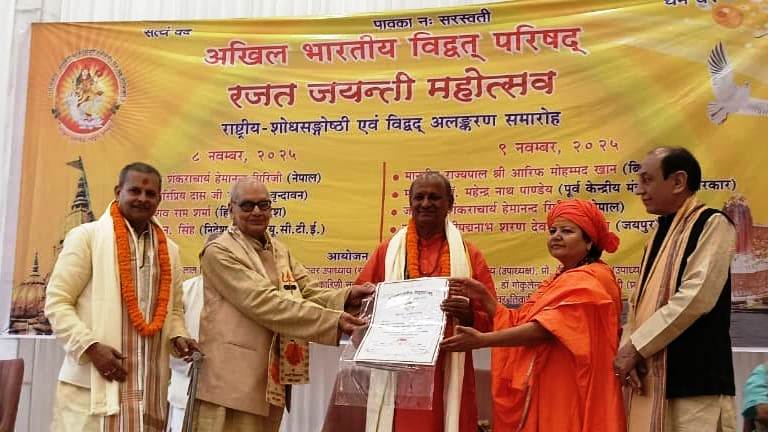 ଭଦ୍ରକ, ୨୫ା୧୧ (ଓଡ଼ିଆ ପୁଅ / ସ୍ନିଗ୍ଧା ରାୟ) – ବନାରସ ହିନ୍ଦୁ ବିଶ୍ୱବିଦ୍ୟାଳୟ ପରିସରରେ ବିଦ୍ୱତ୍ ପରିଷଦ ଦ୍ୱାରା ଆୟୋଜିତ ରାଷ୍ଟ୍ରୀୟ କାର୍ଯ୍ୟକ୍ରମରେ ବିଶ୍ୱ ସଂସ୍କୃତ ସଙ୍ଘଟନ, ପୋଲାଣ୍ଡର କେନ୍ଦ୍ରୀୟ ସଭାପତି ଓ ଲୋକଭାଷା ପ୍ରଚାର ସମିତିର ରାଷ୍ଟ୍ରୀୟ ଅଧ୍ୟକ୍ଷ ଡ଼ା ସଦାନନ୍ଦ ଦୀକ୍ଷିତ ସଂସ୍କୃତ ଶାରଦା ଉପାଧି ରେ ବିଭୂଷିତ ହୋଇଛନ୍ତି । ବିଦ୍ୱତ୍ପରିଷଦର ରଜତ ଜୟନ୍ତୀ ଅବସରରେ ଆୟୋଜିତ ଏହି କାର୍ଯ୍ୟକ୍ରମରେ ବିହାରର ରାଜ୍ୟପାଳ ବିଦ୍ୱାନ ଅରିଫ ମୋହମ୍ମଦ ଖାଁ ଯୋଗଦେଇ ବେଦାନ୍ତ ଦର୍ଶନ ଉପରେ ଦୀକ୍ଷାନ୍ତ ଭାଷଣ ଦେଇ ଭାରତୀୟ ଜ୍ଞାନ ପରମ୍ପରା ର ସୁରକ୍ଷା ପାଇଁ ବିଦ୍ୱାନ ସମାଜକୁ ପରାମର୍ଶ ଦେଇଥିଲେ । ପରିଷଦର ଅଧ୍ୟକ୍ଷ ହିନ୍ଦୁ ବିଶ୍ୱବିଦ୍ୟାଳୟ ର ଡିନ ପ୍ର. ଜୟଶଙ୍କରଲାଲ ତ୍ରିପାଠୀ ଙ୍କ ସଭାପତିତ୍ୱରେ ଅନୁଷ୍ଠିତ ଏହି ଦୁଇ ଦିନିଆ କାର୍ଯ୍ୟକ୍ରମରେ ଦେଶର ବିଭିନ୍ନ ପ୍ରାନ୍ତରୁ ପାଂଚ ଶତାଧିକ ବିଦ୍ୱାନ ତଥା ନେପାଳ ର ପୂଜ୍ୟ ଶଙ୍କରାଚାର୍ଯ୍ୟ ସ୍ୱାମୀ ହେମାନନ୍ଦ ଗିରି ଓ ନିମ୍ବାର୍କ ଆଚାର୍ଯ୍ୟ ପଦ୍ମନାଭ ଶରଣଦେବ ମହାରାଜ, ପୂର୍ବ କେନ୍ଦ୍ରୀୟ ଶିକ୍ଷା ମନ୍ତ୍ରୀ ଡ଼ା. ମହେନ୍ଦ୍ର ନାଥ ପାଣ୍ଡେୟ ଯୋଗ ଦେଇ ଭାରତୀୟ ସଂସ୍କୃତ ସଂସ୍କୃତି ଓ ସନାତନ ଧର୍ମର ସୁରକ୍ଷା ଓ ପ୍ରସାର ନିମିତ କାର୍ଯ୍ୟ ଯୋଜନା ପ୍ରସ୍ତୁତ କରିଥିଲେ। ମହାସଚିବ ଡ଼ କାମେଶ୍ୱର ଉପାଧ୍ୟାୟ ସଭା ସଂଚାଳନ କରିଥିଲେ ଏବଂ ପ୍ର. ରାମପୂଜନ ପାଣ୍ଡେ ଧନ୍ୟବାଦ ଅର୍ପଣ କରିଥିଲେ ।