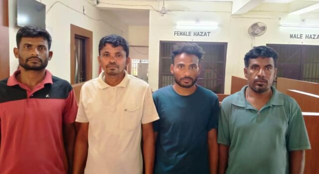 ଭଦ୍ରକ, ୨୦ା୪ (ଓଡ଼ିଆ ପୁଅ / ସ୍ନିଗ୍ଧା ରାୟ) – ଭଦ୍ରକ ଜିଲ୍ଲା ତିହିଡି଼ ଥାନା କାଁପଡ଼ା ପଂଚାୟତ ଅଧୀନ ତଳକାଁପଡ଼ା ଗ୍ରାମରେ ବୋମାମାଡ଼ ଘଟଣାରେ ପୋଲିସ ୪ଜଣଙ୍କୁ ଗିରଫ କରିଛି । ରବିବାର ସେମାନଙ୍କୁ ଗିରଫ କରାଯାଇ କୋର୍ଟ ଚାଲାଣ କରାଯାଇଥିବା ଜଣାଯାଇଛି । ଗିରଫ ହୋଇଥିବା ଅଭିଯୁକ୍ତମାନେ ହେଉଛନ୍ତି ତଳକାଁପଡ଼ା ଗ୍ରାମର ବିଶ୍ୱନାଥ ମଳିକ, ଅରୁଣ ଦାସ, ଅଭୟ ଦାସ ଓ ପ୍ରତାପ ଦାସ । ସୂଚନାଯୋଗ୍ୟ ଯେ ଗତ ୧୬ତାରିଖ ରାତିରେ ପୂର୍ବଶତ୍ରୁତାକୁ ନେଇ ଗୋଷ୍ଠୀ ସଂଘର୍ଷ ଘଟି ବୋମାମାଡ ହୋଇଥଲ। ବୋମାମାଡ଼ ହେବାରୁ ଉଭୟ ପକ୍ଷର ୧୪ ଜଣ ଆହତ ହୋଇଥିଲେ । ପରେ ଏହି ଘଟଣାକୁ ନେଇ ତିହିଡି଼ ଥାନାରେ ପୋଲିସ ପକ୍ଷରୁ ଏକ ମକଦ୍ଦମା (ନଂ ୧୪୫/୨୫)ରୁଜୁ ହୋଇଥିଲା । ଉଭୟ ପକ୍ଷର ଅଭିଯୋଗ କ୍ରମେ ପୋଲିସ ( ୧୪୬ ଓ ୧୪୭/ ୨୫) ୨ଟି ପୃଥକ ମାମଲା ମଧ୍ୟ ରୁଜୁ କରି ତଦନ୍ତ ଚଳାଇଥିଲେ ।