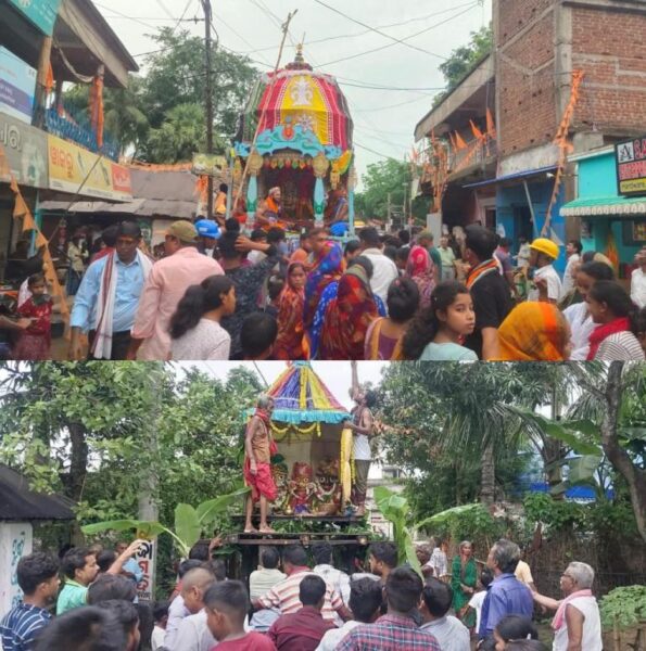 ଭଦ୍ରକ, ୨୭ା୬ (ଓଡ଼ିଆ ପୁଅ / ସ୍ନିଗ୍ଧା ରାୟ) – ପବିତ୍ର ଘୋଷ ଯାତ୍ରା ପାଇଁ ଧାମନଗର ବ୍ଲକର ବିଭିନ୍ନ ସ୍ଥାନରେ ଘୋଷଯାତ୍ରା ଶୁକ୍ରବାର ଅନୁଷ୍ଠିତ ହୋଇଯାଇଛି। ବ୍ଲକର ଧାମନଗର, ଗୋହିରାଟିକିରି, ଆନନ୍ଦପୁର , ଦୋବଲ ବଜାର, ଜାହାଙ୍ଗୀର, ଅସୁରାଳି ,କୋଠାର, କୋଳେଇପଦା, ସୋଧ, ଚୁଡାକୁଟି, ଗୋବିନ୍ଦପୁର, ରାଧାବଲ୍ଲଭପୁର, ଗୁହାଳିଆ , ନଦୀଗାଁ,ଇଚ୍ଛଦା ଆଦି ସ୍ଥାନ ମାନଙ୍କରେ ରଥଯାତ୍ରା ଅନୁଷ୍ଠିତ ହୋଇଛି। ମହାପ୍ରଭୁ ଜଗନ୍ନାଥ, ବଳଭଦ୍ର ଓ ଦେବୀ ସୁଭଦ୍ରାଙ୍କ ପୂଜାର୍ଚ୍ଚନା କରାଯିବା ପରେ ପହଣ୍ଡିରେ ତିନି ଦିଅ ରଥା ରୁଢ ହୋଇଥିଲେ। ରଥରେ ତିନି ଠାକୁରଙ୍କୁ ରିତିନିତି ଅନୁଯାୟୀ ପୂଜାର୍ଚ୍ଚନା କରାଯିବା ପରେ ଶ୍ରଦ୍ଧାଳୁ ମାନେ ରଥ ଟାଣି ଗୁଣ୍ଡିଚା ମନ୍ଦିରକୁ ନେଇଥିଲେ। ବିଶେଷ କରି ଆନନ୍ଦପୁରରେ ଦେବୀ ସୁଭଦ୍ରାଙ୍କ ରଥକୁ ମହିଳା ମାନେ ରଥ ଟାଣି ଥିବାରୁ ସେଠାରେ ବହୁ ସଂଖ୍ୟକ ମହିଳା ଭକ୍ତଙ୍କ ସମାଗମ ହୋଇଥିଲା।ସେହିପରି ଦୋବଲ ଠାରେ ମହିଳା ମାନଙ୍କ ଦ୍ୱାରା ରଥ ଟଣା ଯାଇଥିଲା।ସେହିପରି ରଥଯାତ୍ରା ପାଇଁ ବିଭିନ୍ନ ସ୍ଥାନରେ ଶହଶହ ଶ୍ରଦ୍ଧାଳୁଙ୍କ ସମାଗମ ହୋଇଥିଲା। ଏହି ଅବସରରେ ବିଭିନ୍ନ ସ୍ଥାନରେ ଭଜନ କୀର୍ତନ, ସାଂସ୍କୃତିକ କାର୍ଯ୍ୟକ୍ରମ ଓ ପ୍ରସାଦ ସେବନ ବ୍ୟବସ୍ଥା କରାଯାଇଛି। ଶାନ୍ତି ଶୃଙ୍ଖଳା ରକ୍ଷା ପାଇଁ ବିଭିନ୍ନ ସ୍ଥାନରେ ପୋଲିସ ମୁତୟନ କରାଯାଇଛି।