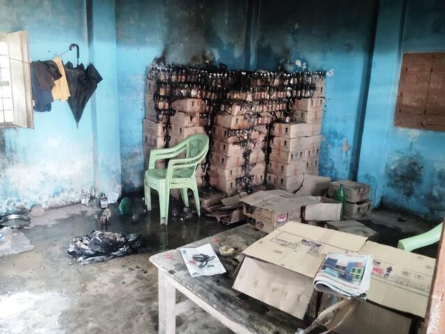 ପେଟ୍ରୋଲ ପକାଇ ଜାଳିଦେଲେ ସରକାରୀ ଦେଶୀ ମଦ ଦୋକାନ, ଜଳିଗଲା ୪.୭୫ ଲକ୍ଷ ଟଙ୍କାର ମଦ