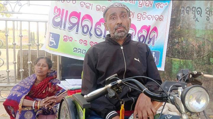ଭଦ୍ରକ, ୯ା୨ (ଓଡ଼ିଆ ପୁଅ / ସ୍ନିଗ୍ଧା ରାୟ) -ନିଜର ବକେୟା ପ୍ରାପ୍ୟ ଓ ଭତା ଟଙ୍କା ପାଇବା ଦାବିରେ ଆଜି ଭଦ୍ରକ ଜିଲା ବନ୍ତ ବ୍ଲକ୍ କାର୍ଯ୍ୟାଳୟ ସମ୍ମୁଖରେ ଏକ ଭିନ୍ନକ୍ଷମ ବ୍ୟକ୍ତି ନିଜର ପତ୍ନୀ ସହ ଆମରଣ ଅନଶନରେ ବସିବା ଘଟଣା ଚର୍ଚ୍ଚାର ବିଷୟ ହୋଇଛି। ଏହି ବ୍ଲକ୍ ଅଧୀନ ସେଣ୍ଢତିରା-ଫୁଲଗଡିଆ ଗ୍ରାମନିବାସୀ କୈଳାସ ଚନ୍ଦ୍ର ମହାପାତ୍ର, ଜିଲାପାଳଙ୍କୁ ଦେଇଥିବା ଅଭିଯୋଗ ପତ୍ର ମୂଳେ ସେ ଏହି ବ୍ଲକ୍ର ସିଡିପିଓଙ୍କ ଗାଡି ଚାଳକ ଭାବେ ଗତ ୨୦୧୨ ମସିହା ଡିସେମ୍ବର ୧୩ ତାରିଖରୁ ୨୦୧୫ ଫେବୃୟାରୀ ୧୨ ତାରିଖ ପର୍ଯ୍ୟନ୍ତ କାର୍ଯ୍ୟ କରୁଥିଲେ। ତେବେ ତାଙ୍କୁ କାର୍ଯ୍ୟରୁ ଅନ୍ତର କରିବା ସମୟରେ ତାଙ୍କର ପ୍ରାପ୍ୟ ବାବଦ ୫୨ ହଜାର ୧୬୬ ଟଙ୍କା ବାକି ରହିଥିଲା। ଇତିମଧ୍ୟରେ ସେ ଦୁଇବର୍ଷ ତଳେ ପାରାଲିସିସ୍ରେ ଆକ୍ରାନ୍ତ ହୋଇ ସରକାରଙ୍କ ପ୍ରଦତ ହୁଇଲ୍ ଚେୟାରରେ ବସି ଯିବାଆସିବା କରୁଛନ୍ତି। ସେ ୮୦ ଭାଗ ଶାରୀରିକ ଅକ୍ଷମ ହୋଇଥିବାବେଳେ ମାସକୁ ମାତ୍ର ୧୨ ଶହ ଟଙ୍କା ଭତା ପାଉଛନ୍ତି। ତେଣୁ ତାଙ୍କର ବକେୟା ପ୍ରାପ୍ୟ ଓ ସରକାରୀ ନିୟମ ଅନୁସାରେ ଭତା ଟଙ୍କା ନପାଇବା ଫଳରେ ନିଜର ଚିକିତ୍ସା ଓ ପରିବାର ପ୍ରତିପୋଷଣ କରିବା ଦୁର୍ବିସହ ହୋଇପଡିଛି। ଇତିମଧ୍ୟରେ ସେ ଦୁଇ ଦୁଇ ଥର ଗତ ୨୦୨୪ ଡିସେମ୍ବର ୩୦ ତାରିଖ ଓ ୨୦୨୫ ସେପ୍ଟେମ୍ବର ୮ ତାରିଖରେ ମୁଖ୍ୟମନ୍ତ୍ରୀଙ୍କ ଅଭିଯୋଗ ପ୍ରକୋଷ୍ଠର ଶରଣ ହୋଇ ସାକ୍ଷାତ୍ କରିଛନ୍ତି। କିନ୍ତୁ ଉକ୍ତ ପ୍ରାପ୍ୟ ପାଇବା ଦିଗରେ ମୁଖ୍ୟମନ୍ତ୍ରୀଙ୍କ ପ୍ରକୋଷ୍ଠରୁ ଯାହା ନିର୍ଦ୍ଦେଶ ଆସିଛି, ତାହା ପ୍ରଶାସନ ଦ୍ୱାରା କାର୍ଯ୍ୟକାରୀ କରାଯାଇନାହିଁ। ଭତା ମଧ୍ୟ ୩୫୦୦ ଟଙ୍କାକୁ ବୃଦ୍ଧି କରାଯାଇନାହିଁ। ଏଣୁ ଜଣେ ପକ୍ଷାଭାତ ରୋଗୀ ଭାବେ ସେ ନିଜର ପ୍ରାପ୍ୟ ଓ ଉଚିତ୍ ଭତା ଟଙ୍କା ଆଜିସୁଦ୍ଧା ନପାଇଲେ ବ୍ଲକ୍ ସମ୍ମୁଖରେ ଆମରଣ ଅନଶନ କରିବାକୁ ଚେତାବନୀ ଦେଇଥିଲେ। ଇତିମଧ୍ୟରେ ସେ ନିଜର ପ୍ରାପ୍ୟ ଟଙ୍କା ନପାଇବାରୁ ବାଧ୍ୟହୋଇ ବ୍ଲକ୍ ସମ୍ମୁଖରେ ଆମରଣ ଅନଶନ କରିଛନ୍ତି।
