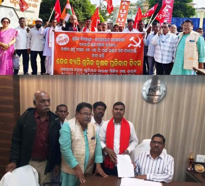 ଭଦ୍ରକ, ୨୬ା୧୧ (ଓଡ଼ିଆ ପୁଅ / ସ୍ନିଗ୍ଧା ରାୟ) – ସମସ୍ତ କୃଷିଜାତ ସାମଗ୍ରୀ ଉତ୍ପାଦନ ମୂଲ୍ୟର ଦେଢଗୁଣ ଅଧିକ ବିକ୍ରି ମୂଲ୍ୟ ସରକାର ସ୍ଥିର କରିବା , ଶ୍ରମିକ ବିରୋଧୀ କର୍ପୋରେଟ ସପକ୍ଷବାଦୀ ୪ ଟି ଶ୍ରମ କୋର୍ଡ ବାତିଲ କରିବା, ଡ୍ରାଫ୍ଟ ଶ୍ରମଶକ୍ତି ନୀତି-୨୦୨୫ କୁ ପ୍ରତ୍ୟାହାର କରିବା, ବିଦ୍ୟୁତ୍ ସଂଶୋଧନ ବିଲ- ୨୦୨୫ ପ୍ରତ୍ୟାହାର କରିବା, ଜଙ୍ଗଲ ଅଧିକାର ଆଇନ-୨୦୧୩ ର ସଠିକ୍ କାର୍ଯ୍ୟକାରୀ କରିବା, ଜମିଅଧିଗ୍ରହଣ ପୁନର୍ବାସ ଓ ଥଇଥାନ ଆଇନ-୨୦୧୩ ର ସଠିକ୍ କାର୍ଯ୍ୟକାରୀତା, ସଂଖ୍ୟାତ୍ମକ କୃଷି ମିଶନ ବାତିଲ କରିବା, ଏମ୍ ଏନ୍ ଆର ଇଜିଏସ ଯୋଯନା ରେ ବର୍ଷ କୁ ମୂଲିଆ ମାନଙ୍କୁ ସର୍ବନିମ୍ନ ୨୦୦ ଦିନର କାମ ଯୋଗାଇ ଦେବା, ଏମ୍ ଏନ୍ ଆର ଇଜିଏସ ଯୋଯନା ରେ ଦୈନିକ ମଜୁରୀ ୭୦୦ ଟଙ୍କାକୁ ବୃଦ୍ଧି କରିବା, ଜାତୀୟ ସାଧାରଣ ମଜୁରୀ ମାସିକ ୨୬୦୦୦ ଟଙ୍କା ପ୍ରଦାନ କରିବା, ଶ୍ରମିକ ମାନଙ୍କୁ ମାସିକ ପେନସନ ୧୦୦୦୦ ଟଙ୍କା ପ୍ରଦାନ କରିବା, ସମସ୍ତ ଶ୍ରମିକ ସାମାଜିକ ସୁରକ୍ଷା ବେନିଫିଟ ଯୋଗାଇ ଦେବା, ଅସଂଗଠିତ କ୍ଷେତ୍ରରେ କାମ କରୁଥିବା ଶତକଡ଼ା ୯୨ ଭାଗ ଶ୍ରମିକ ମାନଙ୍କ ସାମାଜିକ ନିରାପତା ପାଇଁ ସଂସଦରେ ଆଇନ ପ୍ରଣୟନ, ଭଦ୍ରକ ଜିଲ୍ଲାର ସମସ୍ତ ଚାଷୀ, ଭାଗଚାଷୀ, କୃଷି ଶ୍ରମିକ ମାନଙ୍କ ସମସ୍ତ ପ୍ରକାର ଋଣ ଛାଡ କରିବା, ଆମ ଦେଶର ଅତ୍ୟଧିକ ଧନୀ ଲୋକଙ୍କ ଉପରେ ଅଧିକ ଟିକସ ବସାଇବା, କମ୍ ସୁଦ୍ଧରେ ଭଦ୍ରକ ଜିଲ୍ଲାର ସମସ୍ତ ଚାଷୀ ଓ ଭାଗଚାଷୀ ମାନଙ୍କୁ ସରକାରୀ ଓ ଘରୋଇ ବ୍ୟାଙ୍କରୁ ଋଣ ଯୋଗାଇଦେବା, ଜୈବିକ ସଂପତି ଉପରେ ଜାତୀୟ ସାର୍ବଭୌମତ୍ୱ ସୁନିଶ୍ଚିତ କରିବା, ଜାତୀୟ ମୁଦ୍ରିକରଣ ପାଇପଲାଇନକୁ ବାତିଲ କରିବା, ଡ୍ରାଫ୍ଟ ବିହନ ବିଲ୍-୨୦୨୫ ବାତିଲ କରିବା,ବିଦ୍ୟୁତ୍ କ୍ଷେତ୍ରରେ ସ୍ମାର୍ଟ ମିଟର ପ୍ରଚଳନ ବ୍ୟବସ୍ଥା ବାତିଲ କରିବା, ନିର୍ବାଚନ ପ୍ରତିଶ୍ରୁତି ମୁତାବକ ମାଗଣାରେ ପ୍ରତ୍ୟେକ ପରିବାର କୁ ୩୦୦ ୟୁନିଟ ବିଜୁଳି ମାଗଣାରେ ଯୋଗାଇଦେବା, ସରକାରୀ ଫସଲବୀମା ଓ ଗୃହପାଳିତ ପଶୁ ପକ୍ଷୀ ବୀମା ଯୋଯନା ଗ୍ରହଣ କରିବା, ଅତ୍ୟାବଶ୍ୟକ ସାମଗ୍ରୀ ର ଦର କମାଇବା ସହ ୧୪ ଟି ଅତ୍ୟାବଶ୍ୟକ ସାମଗ୍ରୀ କୁ କେଂଟ୍ରାଲ ସାମଗ୍ରୀ ଭୁକ୍ତ କରିବା, ସକଳ ଶ୍ରେଣୀର ଶ୍ରମିକ ମାନଙ୍କୁ ୬୦ ବର୍ଷ ପରେ ମାସିକ ୧୦୦୦୦ ଟଙ୍କା ପେନସନ ଦେବା, ଆମେରିକା ରାଷ୍ଟ୍ରପତି ଟ୍ରମ୍ପ ଙ୍କ ଟାରିଫକୁ ପ୍ରତ୍ୟାଖ୍ୟାନ କରିବା, ସାଂପ୍ରଦାୟିକ ଓ ଜାତିଗତ ଉତ୍ପୀଡନ ପାଇଁ ସ୍ୱତନ୍ତ୍ର ଆଇନ ପ୍ରଣୟନ କରି ଦୃଢ ଭାବରେ କାର୍ଯ୍ୟକାରୀ କରିବା ଓ ମହିଳା ଓ ଶିଶୁ ମାନଙ୍କ ସୁରକ୍ଷା ପାଇଁ ଫାଷ୍ଟ ଟ୍ରାକ ବିଚାର ବ୍ୟବସ୍ଥା ପ୍ରଚଳନ କରିବା ଆଦି ଦାବି ନେଇ ଐତିହାସିକ ଦିଲ୍ଲୀ ଚାଷୀ ଆନ୍ଦୋଳନ-୨୦୨୦ ର ପଞ୍ଚମ ସ୍ମୃତି ବାର୍ଷିକ ପରିପ୍ରେକ୍ଷୀରେ ଭଦ୍ରକ ରେ ସଂଯୁକ୍ତ କୃଷକ ମୋର୍ଚ୍ଚା ଓ କେନ୍ଦ୍ରୀୟ ମିଳିତ ଟ୍ରେଡ଼ ୟୁନିୟନ ଓ ସ୍ୱାଧୀନ ଫେଡେରେସନ ସମୂହ ପକ୍ଷରୁ ଭଦ୍ରକ ସହର ସ୍ଥିତ ବନ୍ତ ଛକରୁ ଏକ ଲାଲ୍ ଶୋଭାଯାତ୍ରା ବାହାରି ଭଦ୍ରକ ସହର ପରିକ୍ରମା କରି ଜିଲ୍ଲାପାଳଙ୍କ କାର୍ଯ୍ୟାଳୟ ସମ୍ମୁଖରେ ବିକ୍ଷୋଭ ପ୍ରଦର୍ଶନ କରିଥିଲେ । ଉପରୋକ୍ତ ଦାବି ଗୁଡିକୁ ପୂରଣ କରିବା ପାଇଁ ମିଳିତ ଶ୍ରମିକ- କୃଷକ ସଂଗଠନର ଏକ ପ୍ରତିନିଧି ଦଳ ରାଷ୍ଟ୍ରପତି ଙ୍କ ଉଦ୍ଦେଶ୍ୟରେ ଜିଲ୍ଲାପାଳଙ୍କୁ ଏକ ସ୍ମାରକପତ୍ର ପ୍ରଦାନ କରିଥିଲେ । ଏହି ଆନ୍ଦୋଳନ କାର୍ଯ୍ୟାକ୍ରମରେ 