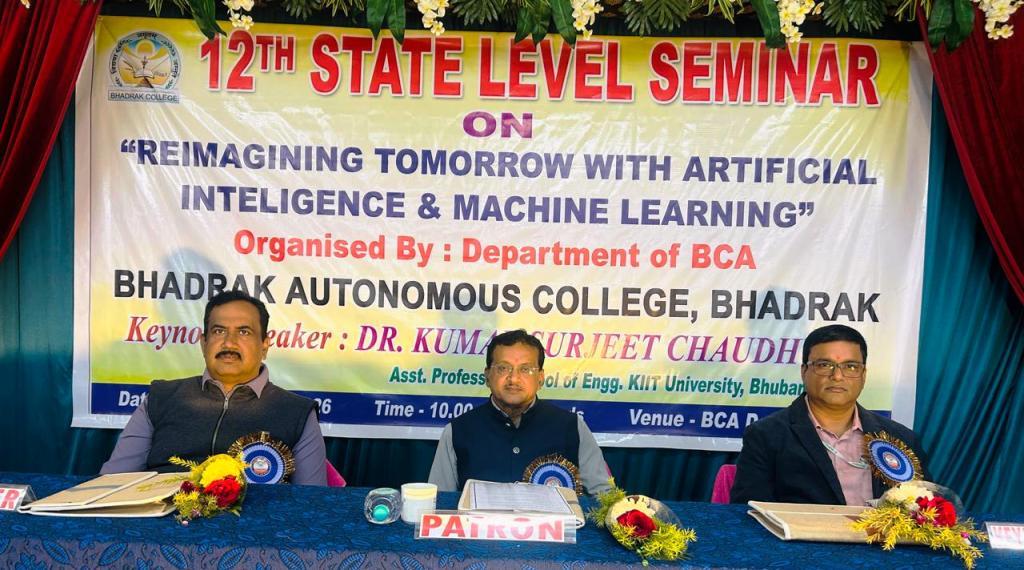 ଭଦ୍ରକ, ୬ା୨ (ଓଡ଼ିଆ ପୁଅ / ସ୍ନିଗ୍ଧା ରାୟ) -ଭଦ୍ରକ ସ୍ୱଂୟଶାସିତ ମହାବିଦ୍ୟାଳୟର ବିସିଏ ବିଭାଗ ପକ୍ଷରୁ ଏକ ରାଜ୍ୟସ୍ତରୀୟ ଆଲୋଚନା ଚକ୍ର ଅନୁଷ୍ଠିତ ହୋଇଯାଇଛି। କୃତ୍ରିମ ବୁଦ୍ଧିମତା ଏବଂ ମେସିନ୍ ଲର୍ଣ୍ଣିଙ୍ଗ୍ ଦ୍ୱାରା ଆସନ୍ତାକାଲିକୁ ପୁନଃକଳ୍ପନା କରିବା ଶୀଷର୍କରେ ଅନୁଷ୍ଠିତ ଏହି ଆଲୋଚନା ଚକ୍ରରେ କିଟ୍ ବିଶ୍ୱବିଦ୍ୟାଳୟର କମ୍ପ୍ୟୁଟର ସାଇନ୍ସ ବିଭାଗ ର ଆସିଷ୍ଟାଂଟ ପ୍ରଫେସର ଡ଼ କୁମାର ସୁରଜିତ୍ ଚୌଧୁରୀ ମୁଖ୍ୟ ଅତିଥି ଭାବରେ ଯୋଗଦେଇ ଆଗାମୀ ଦିନରେ କୃତ୍ରିମ ବୁଦ୍ଧିମତା ଏବଂ ମେସିନ୍ ଲର୍ଣ୍ଣିଙ୍ଗ୍ ଶିକ୍ଷା, ଚିକିତ୍ସା, କୃଷି, ବ୍ୟବସାୟ ଏବଂ ପରିବହନ ମାଧ୍ୟମରେ ବଡ଼ ପରିବର୍ତନ ଆଣିବ। ଏହି ପ୍ରଯୁକ୍ତି ମାନେ ମାନବ ଜୀବନକୁ ଅଧିକ ସୁବିଧାଜନକ ଏବଂ ଆଧୁନିକ କରିବାରେ ମୂଳ ଭୂମିକା ନିଭାଇବ ବୋଲି ମତ ବ୍ୟକ୍ତ କରିଥିଲେ। ମହାବିଦ୍ୟାଳୟର ଅଧ୍ୟକ୍ଷ ଡ଼ ଦୁର୍ଗା ଶଙ୍କର ଦାସଙ୍କ ସଭାପତିତ୍ୱରେ ଅନୁଷ୍ଠିତ ଆଲୋଚନା ଚକ୍ରରେ ବିଭାଗୀୟ ମୁଖ୍ୟ ଡ଼ ପଦ୍ମନାଭ ପତ୍ରୀ ଅତିଥି ପରିଚୟ ଓ ବିବରଣୀ ପ୍ରଦାନ କରିଥିଲେ। ବିଭିନ୍ନ ପ୍ରତିଯୋଗିତାରେ କୃତିତ୍ୱ ହାସଲ କରିଥିବା ଛାତ୍ର ଛାତ୍ରୀ ମାନଙ୍କୁ ପୁରସ୍କାର ପ୍ରଦାନ କରାଯାଇଥିଲା ଅନ୍ୟ ମାନଙ୍କ ମଧ୍ୟରେ ଅଧ୍ୟାପକ ରବିନାରାୟଣ ସେନାପତି, ରଶ୍ମିରେଖା ଦାସ,ପୁଲକ୍ ଚନ୍ଦନ ବିହାରୀ, ବୀଣାପାଣି ପାଢ଼ୀ,ରଶ୍ମିପ୍ରଭା ପଣ୍ଡା, ରଶ୍ମି ରଞ୍ଜନ ସେଠୀ,ସମ୍ବିତ କୁମାର ରାଉତ ପ୍ରମୁଖ ଉପସ୍ଥିତ ଥିଲେ। ଅଧ୍ୟାପକ ଜଗଦୀଶ ମଲ୍ଲିକ ଧନ୍ୟବାଦ୍ ଦେଇଥିଲେ।