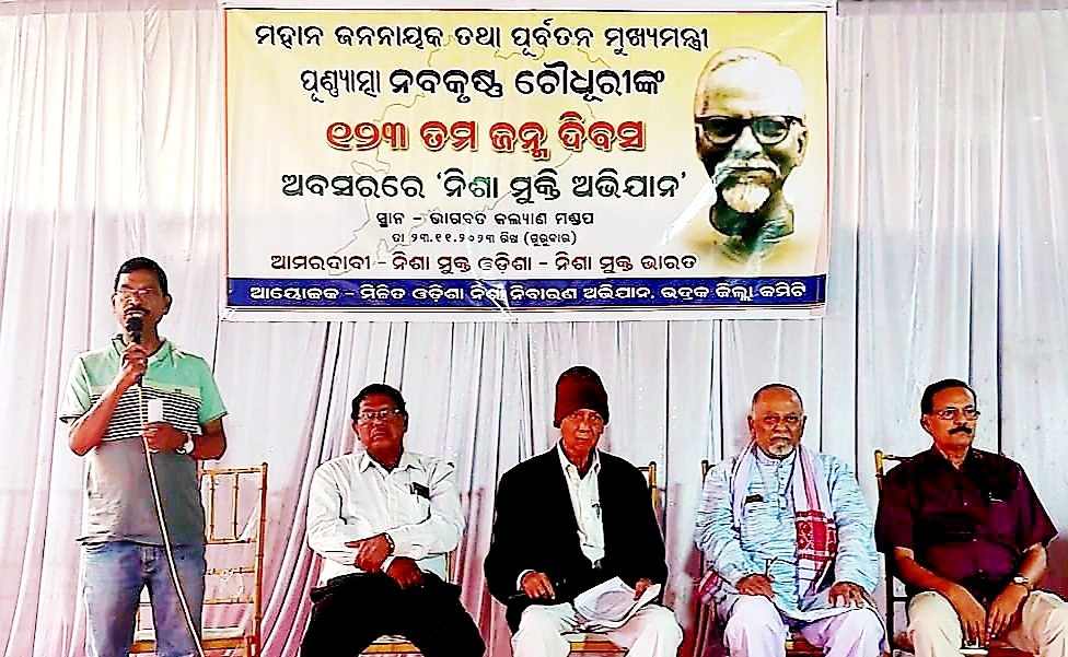 ଭଦ୍ରକ, ୨୩ା୧୧ (ଓଡ଼ିଆ ପୁଅ / ସ୍ନିଗ୍ଧା ରାୟ) – ଆଜି ସ୍ଥାନୀୟ ଭାଗବତ କଲ୍ୟାଣ ମଣ୍ଡପଠାରେ ଅପରାହ୍ଣ ୪ ଘଟିକା ସମୟରେ ମିଳିତ ଓଡ଼ିଶା ନିଶା ନିବାରଣ ଅଭିଯାନ, ଭଦ୍ରକ ଜିଲ୍ଲା କମିଟି ପକ୍ଷରୁ ମହାନ୍ ଜନନାୟକ ତଥା ପୂର୍ବତନ ମୁଖ୍ୟମନ୍ତ୍ରୀ ପୁଣ୍ୟାତ୍ମା ନବକୃଷ୍ଣ ଚୌଧୁରୀଙ୍କ ୧୨୩ ତମ ଜନ୍ମ ଦିବସ ଅବସରରେ ନିଶାମୁକ୍ତି ଅଭିଯାନ କାର୍ଯ୍ୟକ୍ରମ ଜିଲ୍ଲା ସଭାପତି ବରିଷ୍ଠ ଆଇନଜୀବୀ ନିରାକାର ଜେନାଙ୍କ ଅଧ୍ୟକ୍ଷତାରେ ଅନୁଷ୍ଠିତ ହୋଇଯାଇଛି । ଏହି ପରିପ୍ରେକ୍ଷୀରେ ନବକୃଷ୍ଣ ଚୌଧୁରୀଙ୍କ ମୁଖ୍ୟମନ୍ତ୍ରୀତ୍ୱ କାଳରେ ୧୯୫୬ ମସିହାର ଓଡ଼ିଶା ଅବକାରୀ ଆଇନ, ୧୯୫୪ ମସିହାର ଭାଷା ସୁରକ୍ଷା ଆଇନ, ଓଡ଼ିଶାର ପ୍ରଜାସତ୍ତ୍ୱ ଆଇନ, ଜମିଦାରୀ ଉଚ୍ଛେଦ ଆଇନ ଆଦି ପ୍ରଣୟନ କରି ଓଡ଼ିଶାବାସୀଙ୍କୁ ଉଲ୍ଲେଖନୀୟ ସଫଳତା ଦେଇଥିଲେ ବୋଲି ବକ୍ତାମାନେ ମତବ୍ୟକ୍ତ କରିଥିଲେ । ବିଶେଷ କରି ୧୯୫୬ ମସିହାର ଅବକାରୀ ଆଇନକୁ ଓଡ଼ିଶା ସରକାରମାନେ ଅଦ୍ୟାବଧି କାର୍ଯ୍ୟକାରୀ ନକରି ଓଡ଼ିଶାବାସୀଙ୍କୁ ପ୍ରତାରିତ କରିବା ସହ ଏବେର ସରକାର ନିଜେ ମଦ ବ୍ୟବସାୟ ପ୍ରଚଳନ କରିବା ଫଳରେ ତମାମ୍ ଯୁବ ସମାଜ ପଥଭ୍ରଷ୍ଟ ହୋଇଛନ୍ତି ବୋଲି ବକ୍ତାମାନେ କ୍ଷୋଭ ପ୍ରକାଶ କରିଥିଲେ । ରାଜସ୍ୱ ଆଦାୟ ନାମରେ ମଦର ପ୍ରସାର ସରକାରଙ୍କର ଏକ ଭ୍ରଷ୍ଟନୀତି ବୋଲି ବକ୍ତାମାନେ ମଧ୍ୟ ମତବ୍ୟକ୍ତ କରିଥିଲେ । ଶେଷରେ ଓଡ଼ିଶା ସରକାର ୧୯୫୬ ମସିହାର ଅବକାରୀ ନୀତିକୁ କାର୍ଯ୍ୟକାରୀ କରି ଓଡ଼ିଶାକୁ ନିଶାମୁକ୍ତ କରିବା ସଂଗେ ସଂଗେ ୧୯୫୪ ମସିହାରେ ପାରିତ ଭାଷା ସୁରକ୍ଷା ଆଇନକୁ ସମ୍ମାନ ପ୍ରଦାନ କରି ଓଡ଼ିଆ ଭାଷାକୁ ସରକାରୀ ବେସରକାରୀ ଦପ୍ତର ଓ ବ୍ୟବସାୟ ପ୍ରତିଷ୍ଠାନମାନଙ୍କରେ କଡ଼ାକଡ଼ି ଭାବରେ ଲାଗୁ କରିବା ପାଇଁ ସଂଗଠନ ପକ୍ଷରୁ ଦାବି କରାଯାଇଥିଲା ।