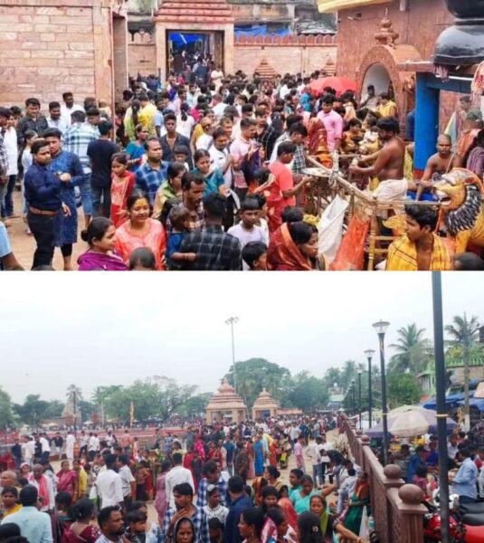 ଭଦ୍ରକ, ୧୬ା୬ (ଓଡ଼ିଆ ପୁଅ / ସ୍ନିଗ୍ଧା ରାୟ) – ରଜ ଉତ୍ସବ ପାଇଁ ସୋମବାରରେ ବାବା ଆଖଣ୍ଡଳମଣିଙ୍କୁ ଦର୍ଶନ ଓ ମାନସିକ ପୂଜା ନିମନ୍ତେ ଲକ୍ଷାଧିକ ଭକ୍ତଙ୍କ ଭିଡ ଲାଗିଥିଲା ପୀଠରେ। ଗତକାଲି ରଜ ସଂକ୍ରାନ୍ତି ଓ ଆଜି ସୋମବାରରେ ଲକ୍ଷାଧିକ ଭକ୍ତଙ୍କ ସମାଗମ ହୋଇଥିଲେ ମଧ୍ୟ ଜିଲା ଓ ମନ୍ଦିର ପ୍ରଶାସନ ପକ୍ଷରୁ ଘୋର ଅବ୍ୟବସ୍ଥା ଯୋଗୁ ଯାତାୟତ ଠାରୁ ଆରମ୍ଭ କରି ପିଇବାପାଣି ଓ ବାବାଙ୍କ ଦର୍ଶନ ନିମନ୍ତେ ହଟହଟା ହେବାକୁ ପଡିଥିଲା ଶ୍ରଦ୍ଧାଳୁଭକ୍ତମାନଙ୍କୁ। ପୀଠରେ ଅବ୍ୟବସ୍ଥା ଯୋଗୁ ଗତ ରବିବାର ଓ ସୋମବାର ଭିଡ ନିୟନ୍ତ୍ରଣ କରିବାରେ ବିଫଳ ହୋଇଥିଲା ଉଭୟ ଜିଲା ଓ ମନ୍ଦିର ପ୍ରଶାସନ। ମଣିବାବାଙ୍କ ଦର୍ଶନ ଓ ପୂଜାର୍ଚ୍ଚନା ପାଇଁ ଦକ୍ଷିଣଦ୍ୱାର(ପ୍ରବେଶ ଦ୍ୱାର) ଠାରେ ଭକ୍ତଙ୍କ ମଧ୍ୟରେ ଦୀର୍ଘ ସମୟ ଧରି ଠେଲାପେଲା ଲାଗି ରହିବାରୁ କିଛି ଭକ୍ତ ଗତକାଲି ସଜ୍ଞାହିନ ହୋଇ ତଳେ ପଡିଯାଥିଲେ ମଧ୍ୟ ପ୍ରଶାସନ ଖାମଖିଆଲି ମନଭାବ ଯୋଗୁ ସୋମବାର ମଧ୍ୟ ସମାନ ଅବସ୍ଥା ଦେଖାଦେଇଥିଲା। ସୋମବାର ସକାଳୁ ଭକ୍ତଙ୍କ ଲମ୍ବା ଧାଡି ଲାଗିଥିବା ବେଳେ ସୁରକ୍ଷା କର୍ମୀ ଓ ପ୍ରଶାସନିକ ଅଧିକାରୀ ନଥିବାରୁ ଭକ୍ତଙ୍କ ମଧ୍ଯରେ ଦୀର୍ଘ ୭ଘଂଟା ଧରି ଠେଲାପେଲା ଲାଗି ରହିଥିଲେ ମଧ୍ୟ ସବୁ ଦେଖି ନଦେଖିଲା ପରି ଚୁପ ରହିଥିଲେ। ବିଶେଷକରି ପ୍ରଶାସନିକ ଅବ୍ୟବସ୍ଥା ଯୋଗୁ ଜଣେ ହେଲେ ସୁରକ୍ଷା କର୍ମୀ ରହିବାତ ଦୂରର କଥା ବ୍ୟାରିକେଡ ବ୍ୟବସ୍ଥା ଥିଲେ ମଧ୍ୟ ନଥିଲା ପରି ଅବସ୍ଥା ଦେଖା ଦେଇଥିଲା। ମନ୍ଦିର ମଧ୍ୟକୁ ମହିଳା ଓ ପୁରୁଷ ଭକ୍ତଙ୍କ ମଧ୍ୟରେ ଠେଲାପେଲା ଲାଗି ରହିବା ସହ ହାତ ଉଠା ଉଠି ପର୍ଯ୍ୟନ୍ତ କଥା ଯାଇଥିଲା। ଫଳରେ ଦୀର୍ଘ ଘଂଟା ଧରି ଧାଡିରେ ଛୋଟଛୋଟ ପିଲା ଓ ମହିଳା ଭକ୍ତ ସଜ୍ଞାହିନ ହୋଇ ଚିତ୍କାର କରୁଥିଲେ ମଧ୍ୟ କେହି ଶୁଣି ନଥିଲେ। ଅନ୍ୟପଟେ ମନ୍ଦିର ସମୁଖର ଦର୍ଶନ ପଥରେ ଛାମୁଣ୍ଡିଆ ନଥିବାରୁ ଡହଡହ ଖରାକୁ ଅସହ୍ୟ ଗୁଳୁଗୁଳିରେ ସିଜିଥିଲେ ଭକ୍ତ। ସେହିପରି ପୀଠରେ ଦୀର୍ଘ ୪ ଘଂଟା ଧରି ବିଜୁଳି କାଟ ଯୋଗୁ ମନ୍ଦିର ଭିତର ପରିସର ଅନ୍ଧକାର ମୟ ରହିବା ସହ ପାନୀୟଜଳର ଘୋର ସଂକଟ ଦେଖା ଦେଇଥିଲା। ଫଳରେ ଭକ୍ତମାନେ ବାଧ୍ୟ ହୋଇ ଶିବଗଙ୍ଗା ପୁଷ୍କରିଣୀର ଦୂଷିତ ଜଳରେ ଶୋଷ ମେଂଟାଇଥିଲେ। ସେପଟେ ଆଖଣ୍ଡଳମଣି ପ ଭଦ୍ରକ ମୁଖ୍ୟରାସ୍ତାର ମଠଡିହ ଠାରୁ ପୀଠର ବାଇପାସ ରାସ୍ତା ଯାଏଁ ଅଣ ଓସାରିଆ ରାସ୍ତା ହୋଇଥିବାରୁ ଦୀର୍ଘ ସମୟ ଧରି ଗାଡି ଚଳାଚଳ ବାଧାପ୍ରାପ୍ତ ହେବାରୁ ଡହଡହ ଖରାରେ ଦୀର୍ଘ ୪କିମି ଚାଲିଚାଲି ଆସିଥିଲେ ହଜାରହଜାର ଭକ୍ତ। ବିଶେଷକରି ବାଇପାସରାସ୍ତାର ବେନିୟମ ଭାବେ କିଛି ସ୍ଥାନୀୟ ଲୋକ ଜବର ଦଖଲ କରିବା ସହ ନିଜର ଚାରି ଚକିଆ ଯାନ ରଖିବାରୁ ଟ୍ରାଫିକ ସମସ୍ୟା ଅଣାୟତ ହେବା ସହ ଉଭୟ ପାର୍ଶ୍ୱରେ ଶହଶହ ଗାଡି ଦୀର୍ଘ ୪ଘଂଟା ଧରି ଅଟକି ରହିବା ଫଳରେ ସ୍ଥାନୀୟ ଆରଡି ପୁଲିସକୁ ସ୍ଥିତି ନିୟନ୍ତ୍ରଣ ଆଣିବାକୁ ନାକେଦମ ହେବାକୁ ପଡିଥିଲା। ଲକ୍ଷାଧିକ ଭକ୍ତଙ୍କୁ ସୀମିତ ପୁଲିସ ମୃତୟନ ହୋଇଥିଲେ ମଧ୍ୟ ଭିଡ ନିୟନ୍ତ୍ରଣରେ ଅସୁବିଧା ଦେଖା ଦେଇଥିଲା। କିଛି ଭକ୍ତ ଏପରି ଅବ୍ୟବସ୍ଥାକୁ ନେଇ ମନ୍ଦିର ପ୍ରଶାସନ ନିକଟରେ ଅଭିଯୋଗ ଆଣିଥିଲେ ମଧ୍ୟ ସନ୍ତୋଷଜନକ ଉତର ନପାଇ ନିରାଶ ହୋଇ ଫେରିଥିଲେ।