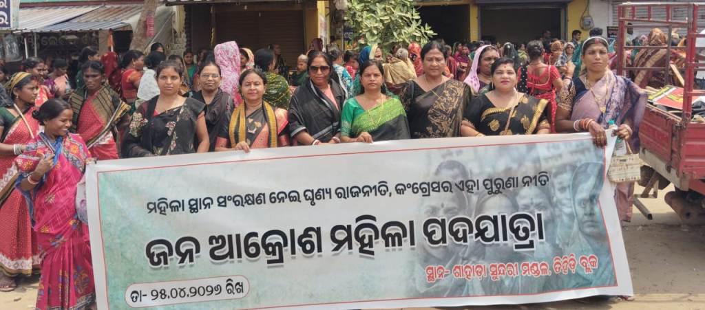ଭଦ୍ରକ, ୨୫୪ (ଓଡ଼ିଆ ପୁଅ / ସ୍ନିଗ୍ଧା ରାୟ) – ଭଦ୍ରକ ଜିଲ୍ଲା ତିହିଡି ବ୍ଲକ ବିଜେର୍ପି ସାହାଡ଼ା ସୁନ୍ଦରୀ ମଣ୍ଡଳ ପକ୍ଷରୁ କେନ୍ଦ୍ର ସରକାରଙ୍କ ଆଗତ ମହିଳା ସଂରକ୍ଷଣ ବିଲ ପରିତ ନହେବା ପ୍ରତିବାଦରେ ମୁଣ୍ଡରେ କଳାପଟି ବାନ୍ଧି ମହିଳାମାନଙ୍କର ଜନ ଆକ୍ରୋଶ ପଦଯାତ୍ରା ଶନିବାର ଅନୁଷ୍ଠିତ ହୋଇଯାଇଛି। ତିହିଡି଼ ବ୍ଲକ ଭାଟପଡ଼ା ପଂଚାୟତ କାର୍ଯ୍ୟାଳୟରୁ ଶତାଧିକ ମହିଳା ମୁଣ୍ଡରେ କଳା ପଟି ବାନ୍ଧି ପଦଯାତ୍ରାରେ ବାହାରିବା ସହ କଂଗ୍ରେସ ଓ ବିଜେଡ଼ି ବିରୁଦ୍ଧରେ ସ୍ଲୋଗାନ ଦେଇ ବ୍ଲକ କାର୍ଯ୍ୟାଳୟ ନିକଟରେ ପହଂଚିଥିଲେ । ସେଠାରେ ଏକ ପଥପ୍ରାନ୍ତ ପ୍ରତିବାଦ ସଭା ଅନୁଷ୍ଠିତ ହୋଇଥିଲା। ପୂର୍ବତନ ଜିଲା ପରିଷଦ ଉପାଧ୍ୟକ୍ଷା ରଞ୍ଜିତା ସ୍ୱାଇଁ, ପୂର୍ବତନ ଭାଜପା ଜିଲା ମହିଳା ସଭାନେତ୍ରୀ କଳ୍ପନା ଜେନା, ସରପଂଚ ପୁଷ୍ପାଞ୍ଜଳି ଲେଙ୍କା, ପୂର୍ବତନ ସରପଂଚ ଅଲିଳପ୍ରଭା ରାଉଳ, ଝରଣା ଜେନା, ରୀନାରାଣୀ ସ୍ୱାଇଁ ପ୍ରମୁଖ ଯୋଗଦେଇ ୩୩ପ୍ରତିଶତ ମହିଳା ସଂରକ୍ଷଣ ବିଲକୁ ବିରୋଧ କରିଥିବା ବିଜେଡ଼ି ଓ କଂଗ୍ରେସକୁ ଭତ୍ସନା କରିବା ସହ ବିଲକୁ ପାରିତ କରିବା ପାଇଁ ଦାବି ଜଣାଇଥିଲେ । ସାଂସଦଙ୍କ ପ୍ରତିନିଧି ସୀତାକାନ୍ତ ନାୟକ, ମଣ୍ଡଳ ସଭାପତି କେଶବ ବେହେରା, ବରିଷ୍ଠ ନେତା ରଘୁନାଥ ପାତ୍ର, ଅଜୟ ମହାପାତ୍ର, ସରପଂଚ ଶୁଭ୍ର ନାରାୟଣ ସେଠୀ, ସମିତିସଭ୍ୟ ଶୁକଦେବ ମଲିକ, ରବିନ୍ଦ୍ର ଶତପଥୀ, ଉମାକାନ୍ତ ଦାସ, ସରୋଜ ନାୟକ,ଦେବେନ୍ଦ୍ର ମହାନ୍ତି, ମାନସ ନାୟକ, ଜୟପ୍ରକାଶ ବେହେରା,ଗଣେଷ କର,ସନ୍ୟାସୀ ବେହେରା, ଅମୀୟ ମହାନ୍ତି,ସୁରେଶ ପାତ୍ର ,କଲ୍ୟାଣି ଦାସ, ଗାୟତ୍ରୀ କର,ମିନତି ଲତା ବେହେରା, ପୁଷ୍ପ ଲତା ଜେନା,ସୁପ୍ରଭା ସାହୁ,ତିଲୋତମା ସାହୁ,ଜ୍ୟୋସ୍ନାରାଣୀ ପତି, ନିରୂପମା ଜେନା,ସୁକାନ୍ତି ଜେନା,କଣ୍ଡେଇ ପୃଷ୍ଟି ପ୍ରମୁଖ ଉପସ୍ଥିତ ଥିଲେ ।
