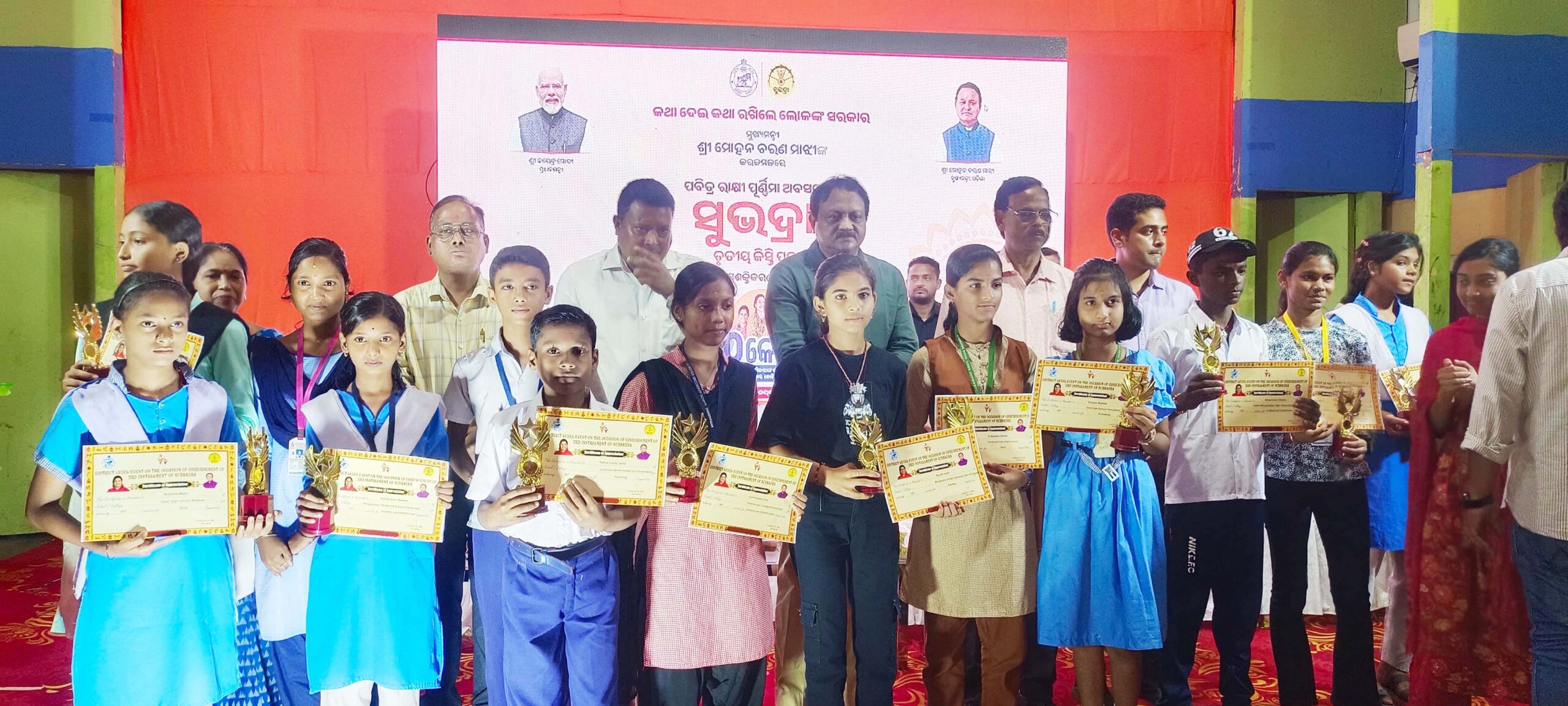 ଭଦ୍ରକ, ୯ା୮ (ଓଡ଼ିଆ ପୁଅ / ସ୍ନିଗ୍ଧା ରାୟ) – ଆଜି କୋରାପୁଟ ଜିଲ୍ଲା ଜୟପୁର ଠାରେ ମାନ୍ୟବର ମୁଖ୍ୟମନ୍ତ୍ରୀ ମୋହନ ଚରଣ ମାଝୀଙ୍କ ଦ୍ୱାରା ପବିତ୍ର ରାକ୍ଷୀ ପୂର୍ଣିମା ଅବସରରେ ସୁଭଦ୍ରା ଯୋଜନା ର ତୃତୀୟ କିସ୍ତି ପ୍ରାୟ ୧ କୋଟି ହିତାଧିକାରୀଙ୍କୁ ପ୍ରତ୍ୟେକ ୫୦୦୦ ଟଙ୍କା ହସ୍ତାନ୍ତର କରାଯାଇଛି।ଏହି ଅବସରରେ ଆଜି ଶହୀଦ ସ୍ମୃତି ଭବନ ଠାରେ ଅନୁଷ୍ଠିତ ଲାଇଭ ଷ୍ଟ୍ରିମିଙ୍ଗ ମାଧ୍ୟମରେ ମାନ୍ୟବର ମୁଖ୍ୟମନ୍ତ୍ରୀ ଙ୍କ ଦ୍ୱାରା ସୁଭଦ୍ରା ଯୋଜନା ର ତୃତୀୟ କିସ୍ତି ପ୍ରଦାନ ସଭାକୁ ସମସ୍ତେ ଦେଖିଥିଲେ।ଏଥିରେ ମୁଖ୍ୟ ଅତିଥି ରୂପେ ଜିଲ୍ଲାପାଳ ଦିଲିପ୍ ରାଉତରାଏ ଯୋଗ ଦେଇଥିଲେ ଏବଂ ମଞ୍ଚା ସିନ ଅତିଥି ରୂପେ ମୂଖ୍ୟ ଉନ୍ନୟନ ଅଧିକାରୀ ଜିଲ୍ଲା ପରିଷଦ ଶୁଭେନ୍ଦ୍ର ସାମଲ, ଅତିରିକ୍ତ ଜିଲ୍ଲାପାଳ ସରୋଜ ଦତ୍ତ ,ଡେପୁଟୀ କଲେକ୍ଟର କାର୍ତ୍ତିକ ନାଥ ମଣ୍ଡଳ, ଜିଲ୍ଲା ସାମାଜିକ କଲ୍ୟାଣ ଅଧିକାରି ରୂପାଲି ମିତ୍ର, ଗୋଷ୍ଟି ଉନ୍ନୟନ ଅଧିକାରି ରଶ୍ମୀ ରଞ୍ଜନ ମଲ୍ଲିକ ପ୍ରମୁଖ ଉପସ୍ଥିତ ଥିଲେ। ଜିଲ୍ଲା ସ୍ତରୀୟ ସୁଭଦ୍ରା ପ୍ରତିଯୋଗିତା ରେ ସଫଳ ହୋଇଥିବା ଛାତ୍ର ଛାତ୍ରୀ ଙ୍କୁ ଟ୍ରଫି ଓ ମରକ୍ସଗ୍ଧସଲସମବଗ୍ଧର ପ୍ରଦାନ କର।ଯାଇଥିଲା। ଏହାପରେ ରାକ୍ଷୀ ବନ୍ଧନ ଉତ୍ସବ ପାଳନ କରାଯାଇଥିଲା।