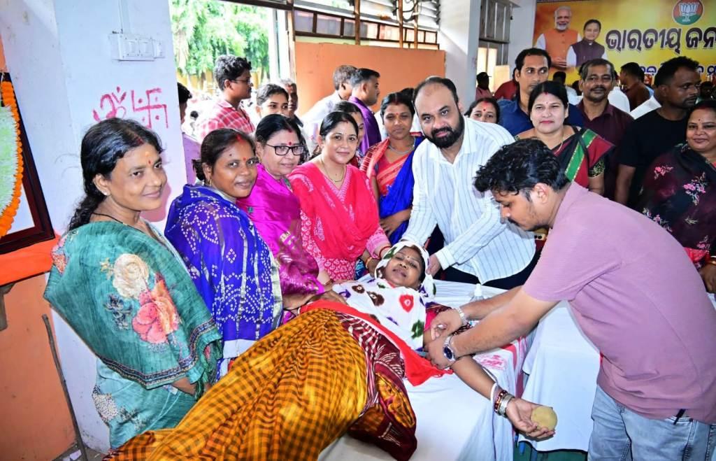 ଭଦ୍ରକ, ୨୭ା୯ (ଓଡ଼ିଆ ପୁଅ / ସ୍ନିଗ୍ଧା ରାୟ) – ପ୍ରଧାନମନ୍ତ୍ରୀ ନରେନ୍ଦ୍ର ମୋଦିଙ୍କ ଜନ୍ମଦିନ ଉପଲକ୍ଷେ “ସେବା ପକ୍ଷ’ ଅବସରରେ ଆଜି ଭଦ୍ରକ ବିଧାୟକଙ୍କ କାର୍ଯ୍ୟାଳୟରେ ବିଧାୟକ ସୀତାଂଶୁ ଶେଖର ମହାପାତ୍ର ଏବଂ ଜିଲ୍ଲା ସଭାପତି ଭଗବାନ ପଣ୍ଡାଙ୍କ ଉପସ୍ଥିତିରେ ଏକ ବିଶାଳ ରକ୍ତଦାନ ଶିବିର ଅନୁଷ୍ଠିତ ହୋଇଯାଇଛି। ତେବେ ଏହି ଶିବିରରେ ୧୨୦ ୟୁନିଟ ରକ୍ତ ସଂଗ୍ରହ ହୋଇଥିଲା। ଜିଲ୍ଲା ପରିଷଦ ମଳୟ ଜେନା, ମହିଳା ମୋର୍ଚ୍ଚା ର ସଭାପତି ଙ୍କ ସମେତ ସମସ୍ତ ସଦସ୍ୟ, ସମସ୍ତ ମଣ୍ଡଳ ସଭାପତି ଓ କାର୍ଯ୍ୟକର୍ତାମାନେ ଏହି ରକ୍ତଦାନ ଶିବିରରେ ଉପସ୍ଥିତ ଥିଲେ।