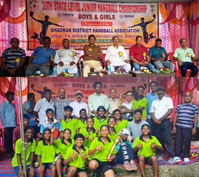 ଭଦ୍ରକ, ୯ା୬ (ଓଡିଆ ପୁଅ / ସ୍ନିଗ୍ଧା ରାୟ) – ଭଦ୍ରକ ଜିଲ୍ଲା ହ୍ୟାଣ୍ଡବଲ ସଂଘ ଆନୁକୁଲ୍ୟରେ ଓ ରାଜ୍ୟ ହ୍ୟାଣ୍ଡବଲ ସଂଘ ସହଯୋଗ ରେ ପିଏମ୍ ଶ୍ରୀ ବିଏମ୍ ବାଗୁରାଉ ବିଦ୍ୟାଳୟ ପଡ଼ିଆରେ ୩୦ତମ ରାଜ୍ୟସ୍ତରୀୟ କନିଷ୍ଠ ବାଳକ ଓ ବାଳିକା ହ୍ୟାଣ୍ଡବଲ ପ୍ରତିଯୋଗିତା ଟି ପିଏମ୍ ଶ୍ରୀ ବିନ୍ଦୁ ମାଧବ ବାଗୁରାଇ ହାଇସ୍କୁଲ ପଡିଆରେ ୮ ଓ ୯ ଦିନ ଧରି ଅନୁଷ୍ଠିତ ହୋଇଥିଲ। ଏହି ପ୍ରତିଯୋଗିତାରେ ୧୮ ଜିଲ୍ଲା ରୁ ମୋଟ ୩୨୧ ଜଣ ଖେଳାଳା ଅଂଶଗ୍ରହଣ କରିଥିଲେ । ଏହି ପ୍ରତିଯୋଗିତା ର ଉଦଘାଟନୀ ଉତ୍ସବରେ ଦିଲିପ୍ କୁମାର ରାଏ ଜିଲ୍ଲାପାଳ ଭଦ୍ରକ ,ଅଜୟ କୁମାର ନାୟକ ,ଗୋଲକ ନାୟକ ପ୍ରଧାନ ଶିକ୍ଷକ ପ୍ରଶାନ୍ତ ସାହୁ , ଜିଲ୍ଲା ସଂପାଦକ, ସଭାପତି, କାଉନ୍ସିଲର୍ .ସ୍ୱାଗତିକା ନାୟକ ପ୍ରମୁଖ ଯୋଗ ଦେଇଥିବାବେଳେ ଉଦଯାପନି ଉତ୍ସବରେ ଅତିରିକ୍ତ ଉପ ଜିଲ୍ଲାପାଳ ତଥା ଜିଲ୍ଲା କ୍ରିତା ଅଧିକାରୀ,ଶ୍ୟାମଲ କୁମାର ରାଏ ରମେଶ କୁମାର ମହାନ୍ତି ସ୍ୱତନ୍ତ୍ର କ୍ରିତା ଅଧିକାରୀ, ରାଜ୍ୟ ସଂପାଦକ ବିରେନ୍ ବେହେରା, ଡା ରବିନ୍ଦ୍ର କୁମାର ନାୟକ , ତପନ କୁମାର ମିଶ୍ର , ଅଣ୍ଣବ ସିନା ପ୍ରମୁଖ ଯୋଗଦେଇ ଖେଳାଳୀ ମାନଙ୍କୁ ଟ୍ରଫି ପ୍ରଦାନ କରିଥିଲେ ଏହି ବାଳିକା ବର୍ଗରେ ଭୁବନେଶ୍ୱର ଯୁଗ୍ମ ବିଜେତା ହୋଇଥିବା ବେଳେ ପୁରୀ ବାଳକ ଓ ବାଳିକା ଯୁଗ୍ମ ଉପ ବିଜେତା ହୋଇଥିଲେ ।ଏହି ପ୍ରତିଯୋଗିତ। ଟିକୁ ପରିଚାଳନା କରିବାରେ ସେକ୍ ଗୋଲାପ ,ମନୋଜ ସାହୁ , ରବିନାରାୟଣ, ମହାନ୍ତି। ସୁଖାନ୍ତ କେନା , ତପନ ମିଶ୍ର.,ରାଜେସ ନାୟକ ପ୍ରମୁଖ ସହଯୋଗ କରିଥିଲେ।