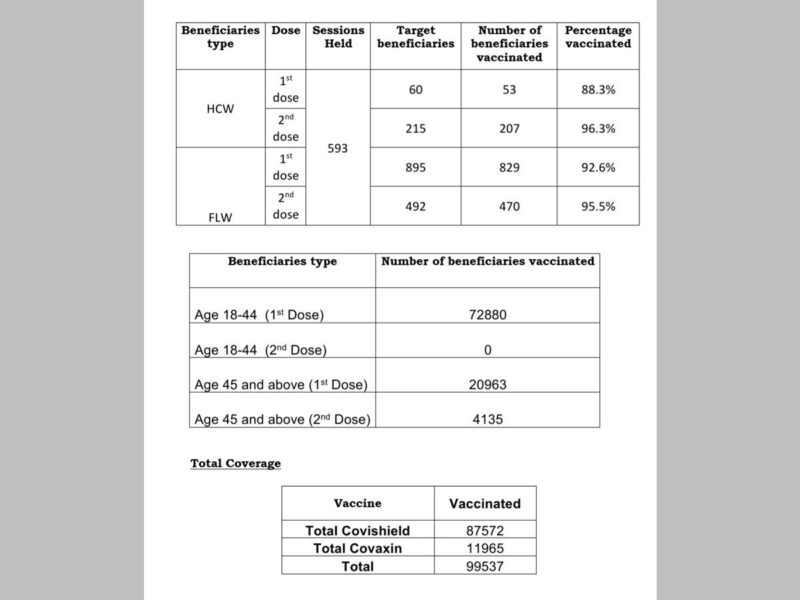ସେହିପରି ୧୮ରୁ ୪୪ ବର୍ଷ ବୟସର ୭୨,୮୮୦ ଜଣ ନାଗରିକଙ୍କୁ ଏବଂ ୪୫ ବର୍ଷରୁ ଊର୍ଦ୍ଧ୍ବ ୨୦,୯୬୩ ଜଣ ନାଗରିକଙ୍କୁ ୧ମ ଡୋଜ୍ ଟୀକା ଦିଆଯାଇଛି।