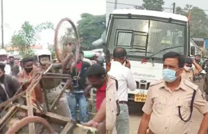 ମାସ୍କ ଚେକିଂ ସମୟରେ ପୁଲିସ୍ର ମାଡ ଅଭିଯୋଗ, ଶତାଧିକ ଲୋକଙ୍କ ଟାୟାର ଜାଳି ରାସ୍ତା...