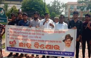 ଛାତ୍ର ସଂସଦ ନିର୍ବାଚନ ଦାବିରେ ଏସଏଫ୍ଆଇ ପକ୍ଷରୁ ବିକ୍ଷୋଭ