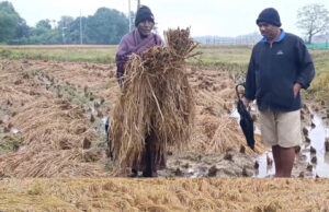 ବର୍ଷା ଛାଡିବା ପରେ ବତୁରା ଧାନକୁ ସାଉଁଟୁଛନ୍ତି ଚାଷୀ, କ୍ଷେତରେ ଭାସୁଛି ସୁନାର ଫସଲ
