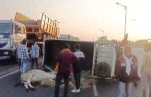 ଗୋରୁ ବୋଝେଇ ପିକପ ଭ୍ୟାନ୍ ଓଲଟିଲା, ୨ ଗୋରୁ ଉଦ୍ଧାର