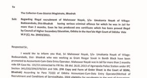 ନକଲି ସାର୍ଟିଫିକେଟ୍ ଓ ଅପରାଧିକ ମାମଲା ଥାଇ ପଦୋନ୍ନତି, ଜିଲାପାଳଙ୍କ ନିକଟରେ ଅଭିଯୋଗ