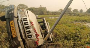 ଷ୍ଟ୍ରୀଟ ଲାଇଟି ଖୁଂଟକୁ ପିଟି ଓଲଟିଲା ବୋଲେରୋ ଗାଡି