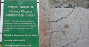 ଧାମରା- ଜାମୁଝାଡି ରାସ୍ତା କାମ ନସରୁଣୁ ଫାଟି ଆଁ କଲାଣି