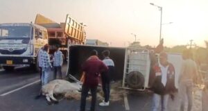 ଗୋରୁ ବୋଝେଇ ପିକପ ଭ୍ୟାନ୍ ଓଲଟିଲା, ୨ ଗୋରୁ ଉଦ୍ଧାର