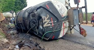 ଟ୍ୟାଙ୍କର ଓଲଟିଲା ,ଡ୍ରାଇଭର ଗୁରୁତର