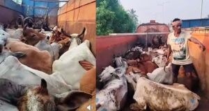 ଗୋସେବକଙ୍କ ଦ୍ୱାରା ଦୁଇଟି ଗୋରୁ ବୋଝେଇ ଟ୍ରକ୍ ଉଦ୍ଧାର, ୬୫ ଗୋରୁ ଉଦ୍ଧାର