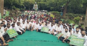 ଗାନ୍ଧୀ ପ୍ରତିମୂର୍ତି ସମ୍ମୁଖରେ ବିଜେଡ଼ି ପକ୍ଷରୁ କଳା ପଟି ଧାରଣ କରି ପ୍ରତିବାଦ