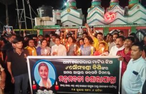 ସୋମ୍ୟଶ୍ରୀ ଙ୍କ ମୃତ୍ୟୁ ପାଇଁ ଚାନ୍ଦବାଲି କଂଗ୍ରେସ ପକ୍ଷରୁ ମହମବତୀ ଶୋଭାଯାତ୍ରା
